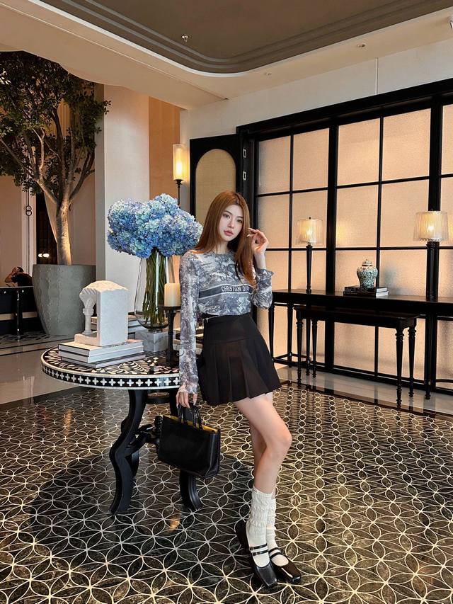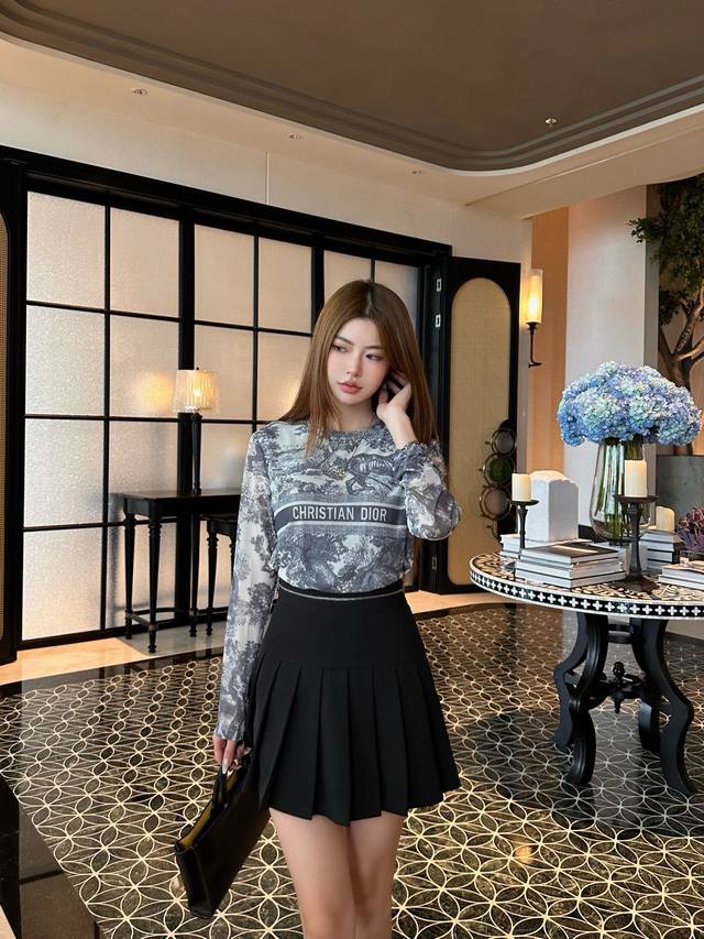 Cd Jungle print mesh bottoming shirt. Lightweight fabric with a smooth and delicate touch. Round neckline to modify the neck. Fully printed animal jungle pattern. Decorated with brand letter ribbon in the middle. High-end and fashionable. Small piece that shows off the figure. The top is full of queen temperament. It is very beautiful when worn as an inner layer or alone. It looks good with any combination. Sml