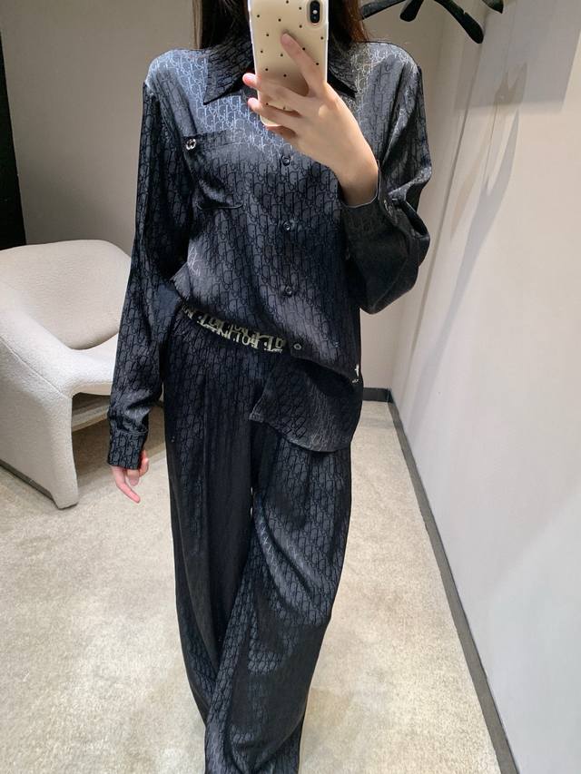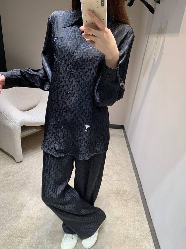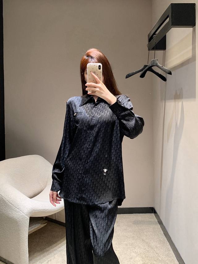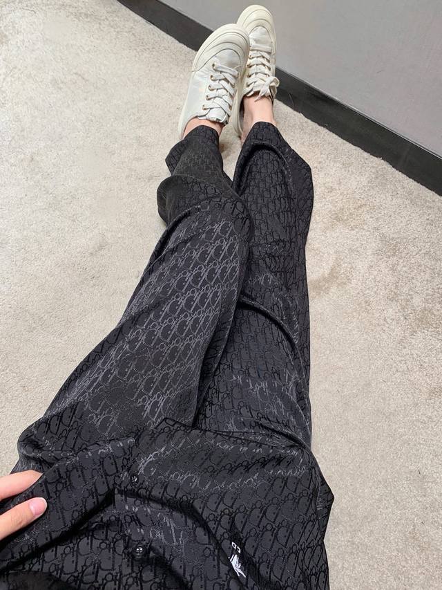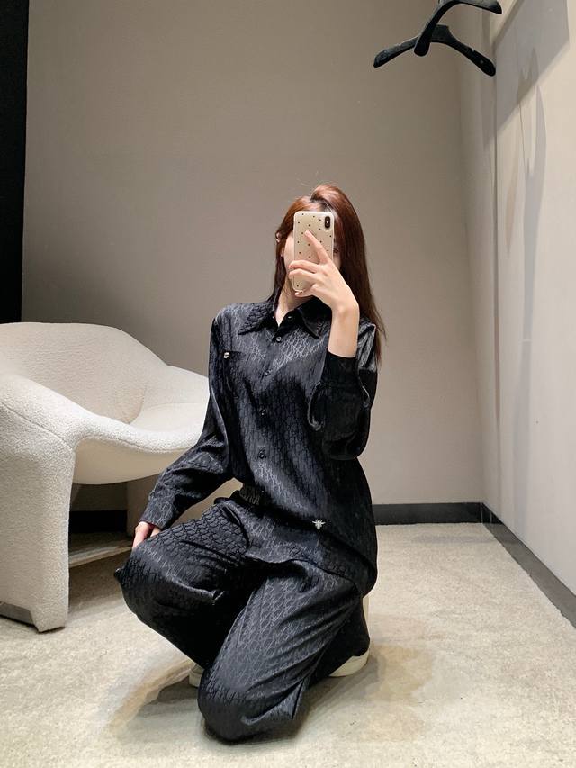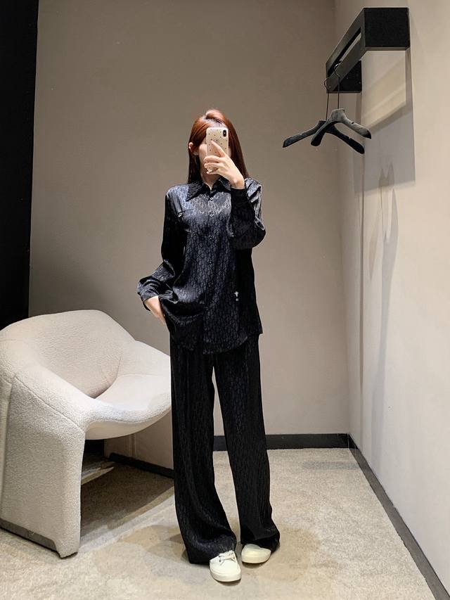 Cd Lettered rayon jacquard shirt and trousers set | Exclusive high-end product! The rayon texture is smooth and comfortable. The loose-fitting white shirt paired with elastic waist trousers is very inclusive and suitable for girls of all shapes and sizes. It is very flattering and looks great whether worn separately or as a set! The custom rayon fabric has a very high print rate and is extremely comfortable. It is simple, sophisticated and tasteful! Ladies! Give me Sml