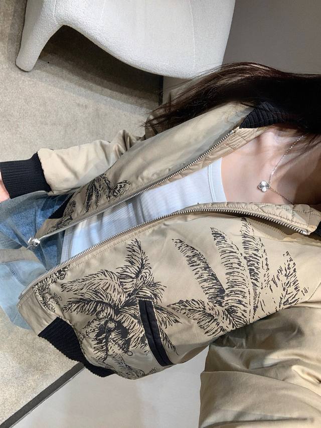 Cd This vibrant jungle quilted flight jacket is exclusively developed by Yb! High-quality product! Crafted using the romantic haute couture art of dense floral stitching, this jacket is gentle and romantic, and very versatile. The loose fit looks super cool on women, and the monogram elements are classic and stylish. The fine yarn count and delicate texture are perfectly tailored, and the retro pattern is trendy and sophisticated. The silhouette is easy to wear for any body type and can be paired with a full sense of style! Available now Sml