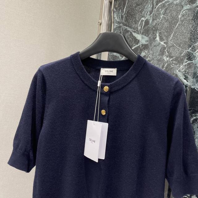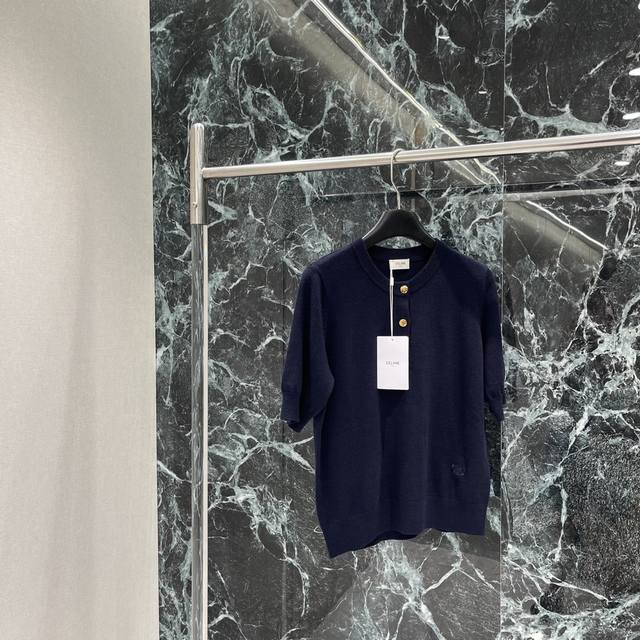 Ce 25 New early autumn round-neck knitted short-sleeved Arc de Triomphe buttons