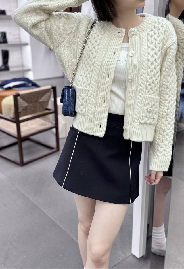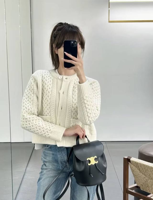 Ce 25 New Early Fall Round Neck Knit Cardigan with Exquisite Embroidered Logo Pockets. Jacquard Textured Pattern Shows the Elegance of Ready-to-Wear. Overall Elegance with Small Details. Regular Turtleneck Cut for a Slim Fit and Full of Style. One Color Sml