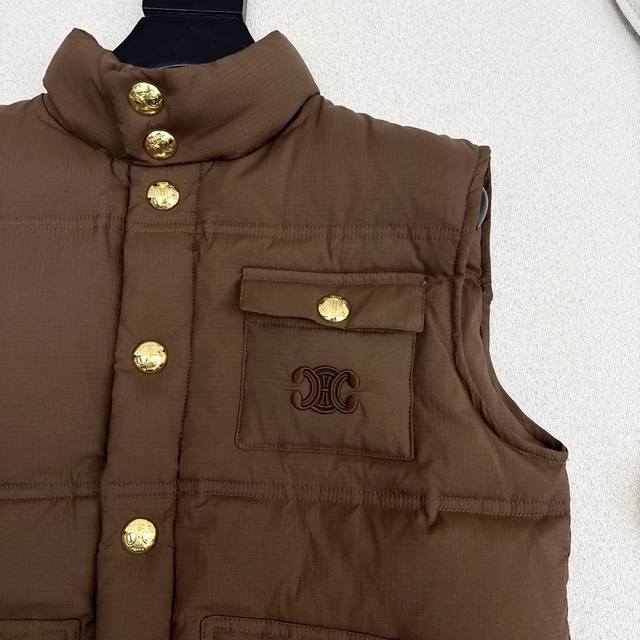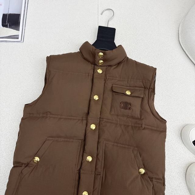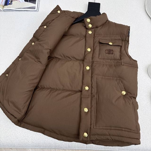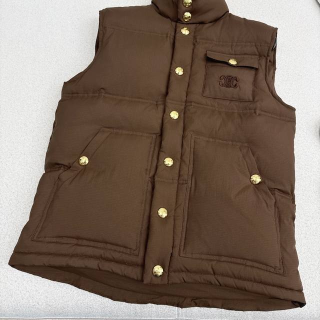 Ce 25Ss Autumn/Winter New Arrival Triumphal Arch Embroidered Pocket Decoration Stand Collar Down Vest Three-Dimensional Cut H-Line Stylish and Handsome Positioning Letter Logo Triumphal Arch Embroidered Pocket Decoration National Standard 90% White Goose Down Filling Original Custom Jacquard Memory Silk Logo Fabric Soft, Lightweight and Comfortable Imported Machine Sewing Three-Dimensional Pressed Line Craftsmanship Original Hardware Accessories Details are a Great Addition Recommended Three Colors Available Now Sml Size S: Bust 104cm, Length 62cm. Manual measurement may have errors.