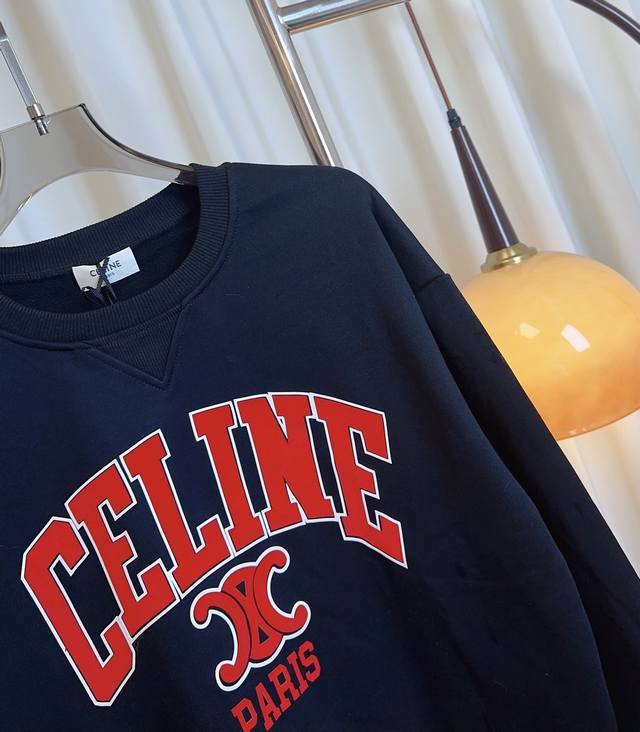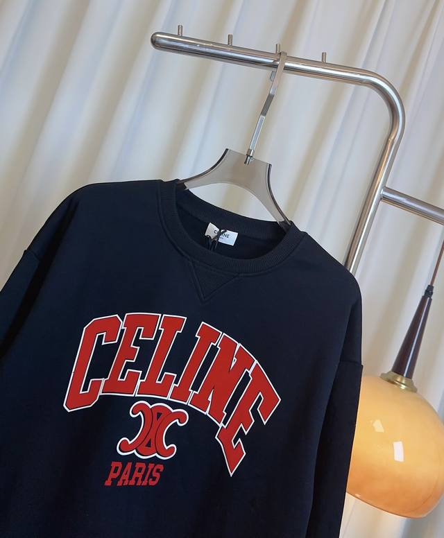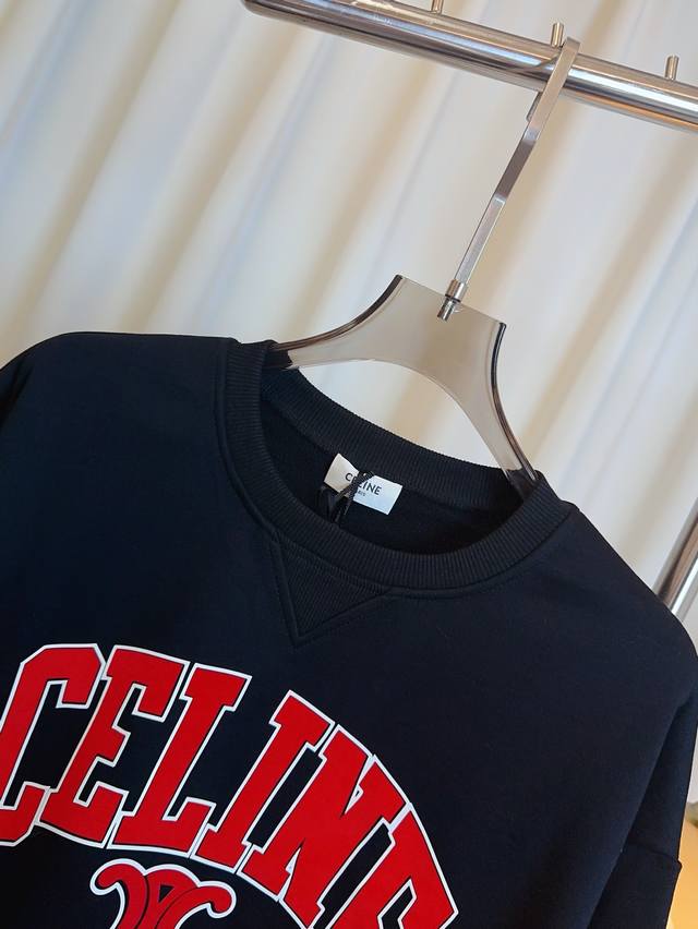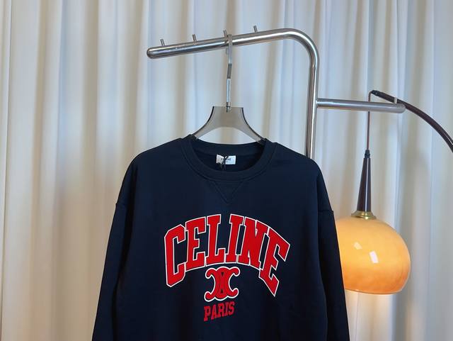 Ce** New Flocked Logo Sweatshirt, Custom Terry Cloth, Pure Cotton Fabric, Comfortable and Breathable, Drop Shoulder Design, Flocked Logo Adds a Youthful and Energetic Touch, A Must-Have for Girls, Highest Quality, Welcome to Compare Gray, Navy Blue, Black, Sml,