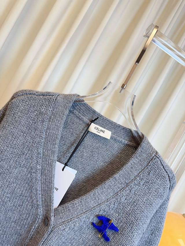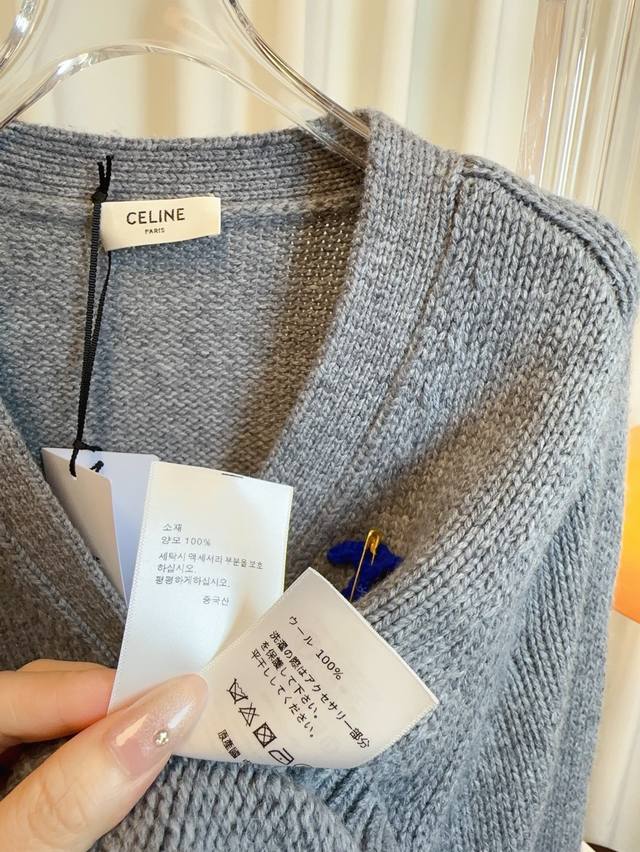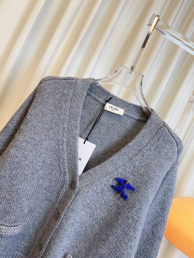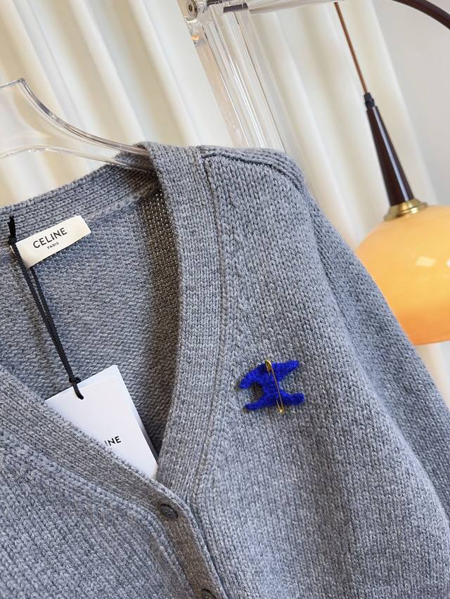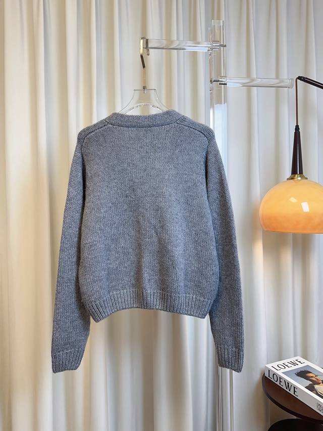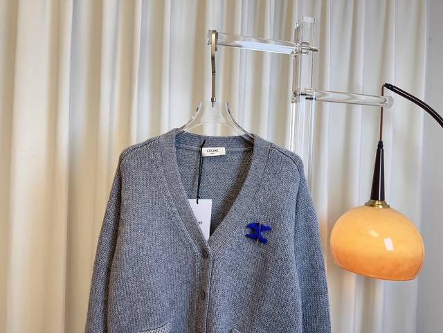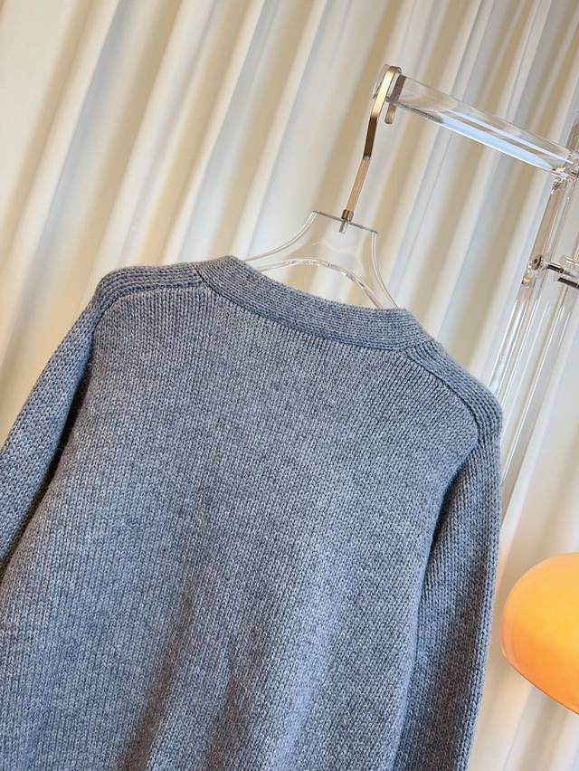 Ce** New wool logo cardigan, custom-made, custom-knitted wool fabric, high-quality, comfortable, and breathable. Features a wool pin logo embellishment for a refined and youthful look. Highest quality. Welcome to compare off-white, gray, and red. Sizes: Sml,