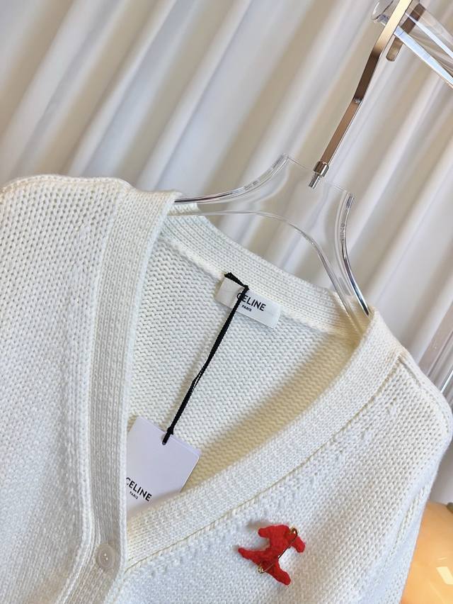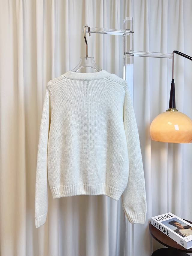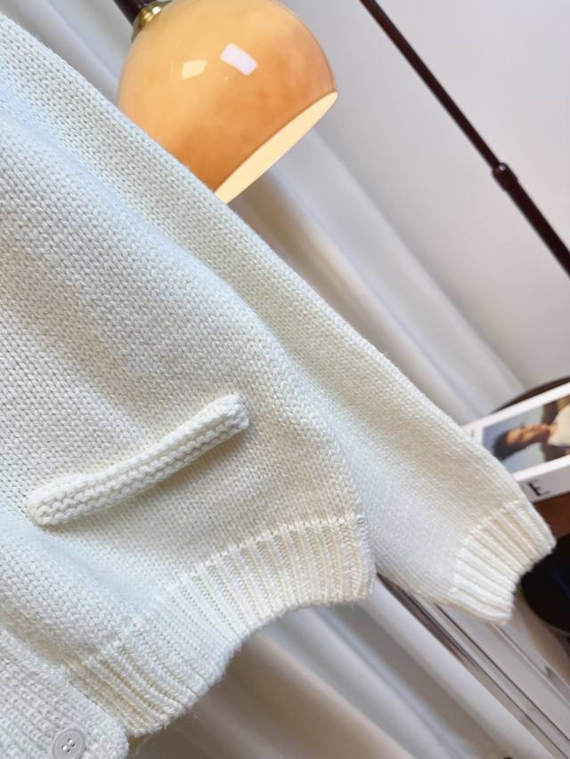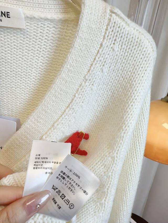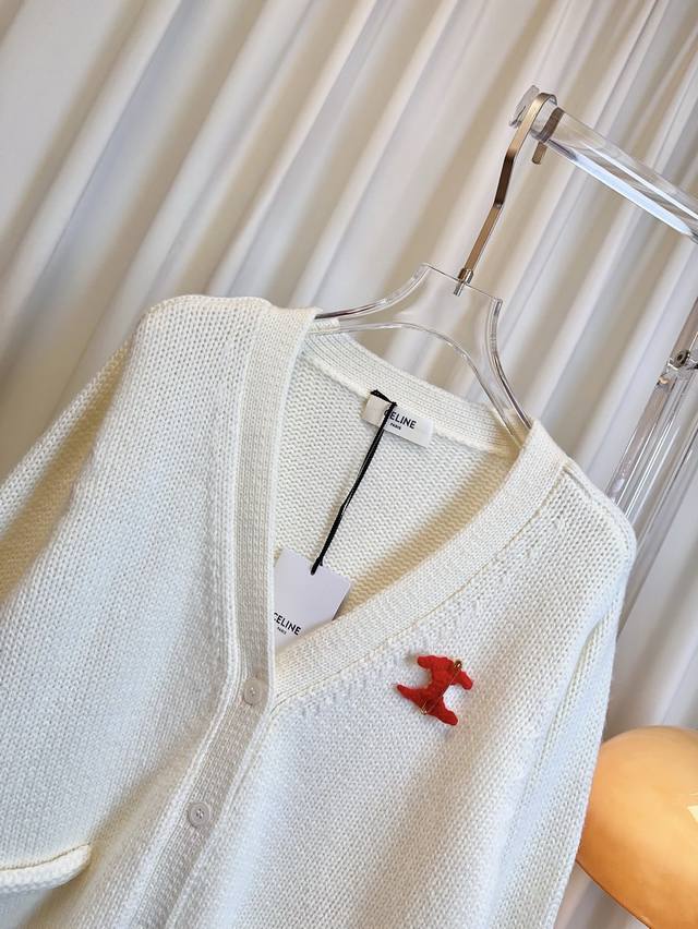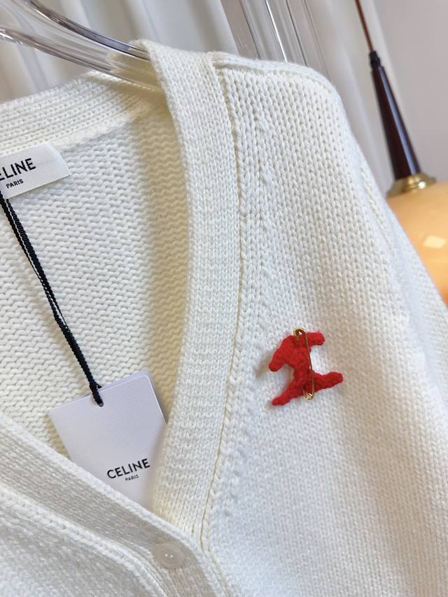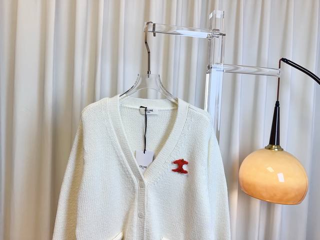 Ce** New wool logo cardigan, custom-made, custom-knitted wool fabric, high-quality, comfortable, and breathable. Features a wool pin logo embellishment for a refined and youthful look. Highest quality. Welcome to compare off-white, gray, and red. Sizes: Sml,
