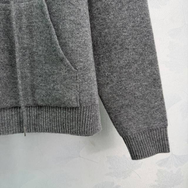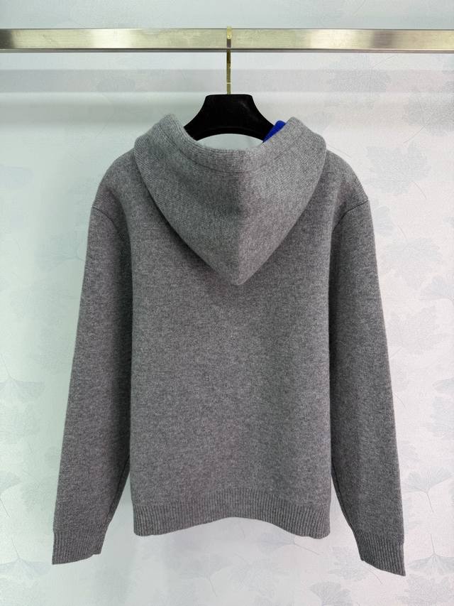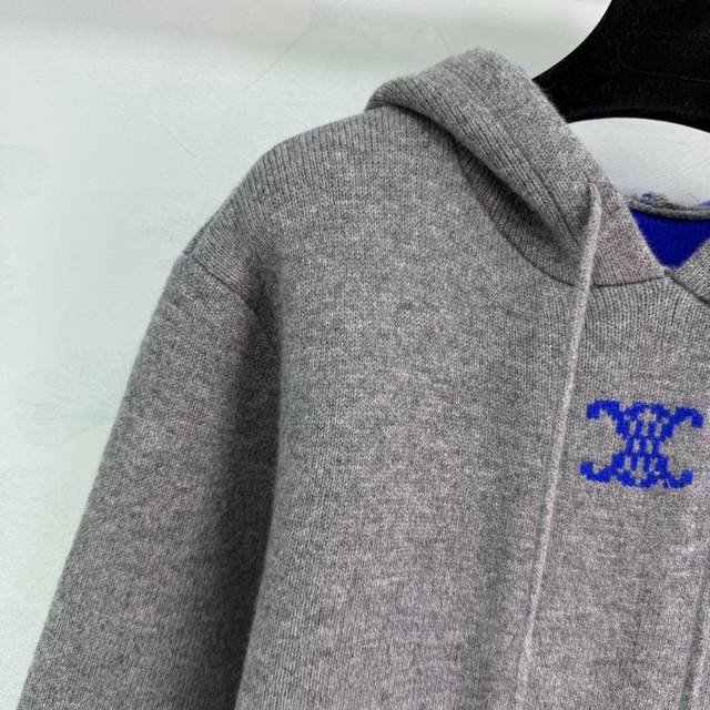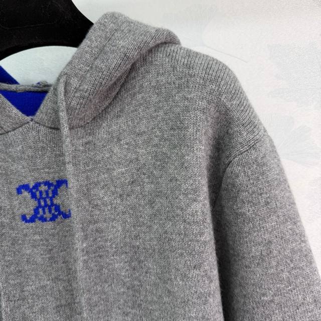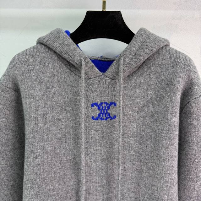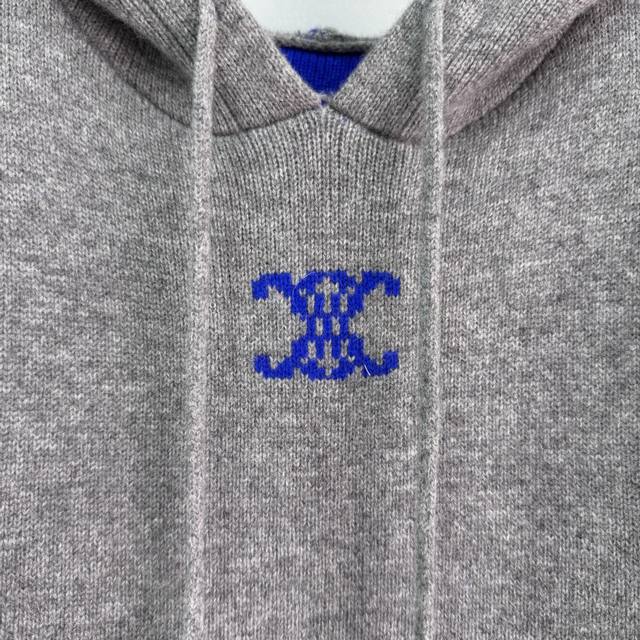 Ce*25 Autumn/Winter New Cashmere Hooded Knit Sweater. Made with cashmere and wool, it's incredibly soft to the touch and provides excellent warmth. The grey base with a blue color-blocked hood and Arc de Triomphe logo on the chest makes it understated yet highly recognizable.