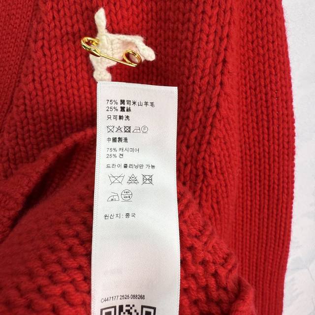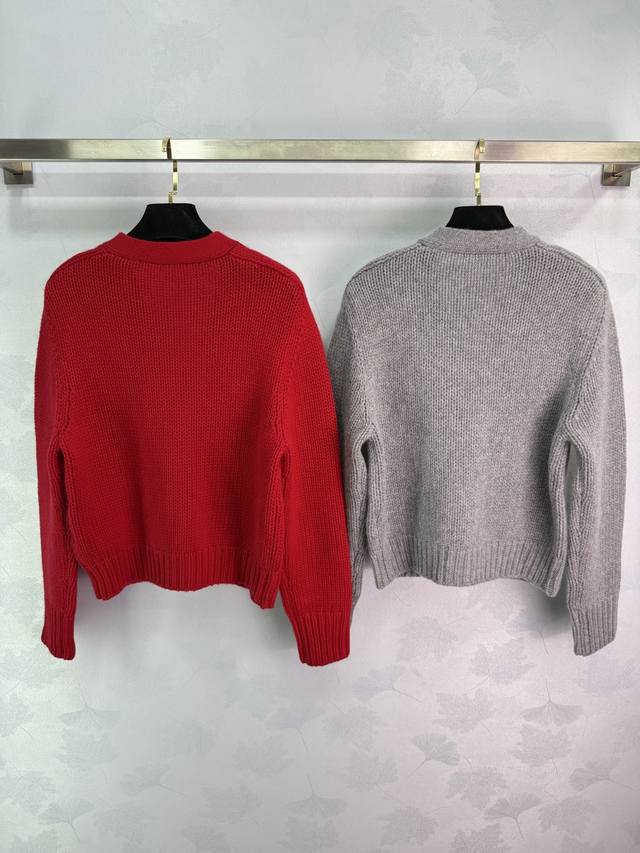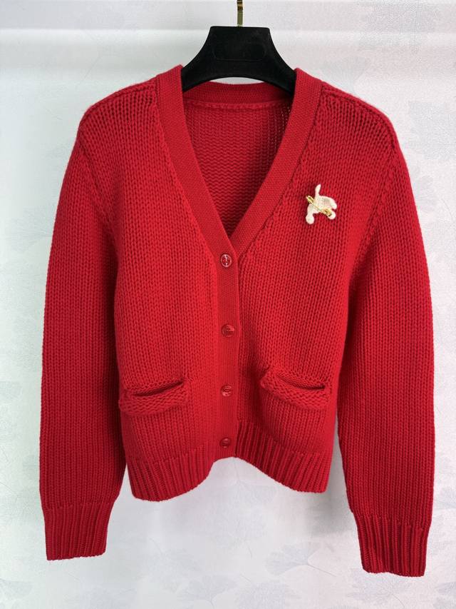 Ce*25 Autumn/Winter New V-neck Knit Cardigan, made of soft and skin-friendly cashmere, super comfortable to wear in autumn and winter. Features a brooch logo for added detail.
