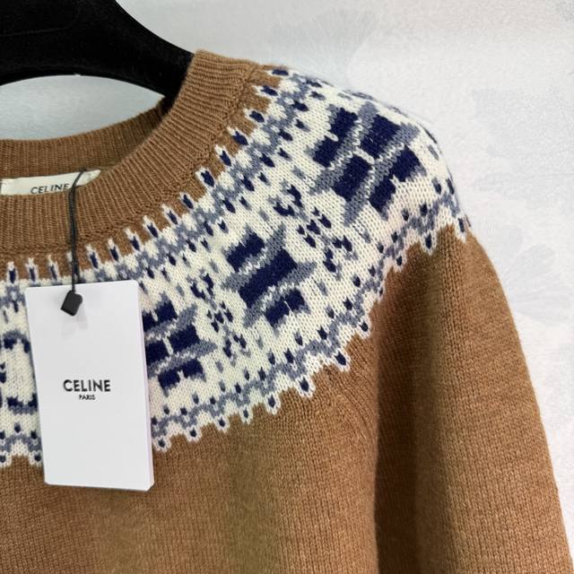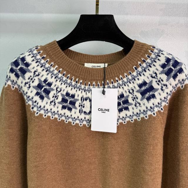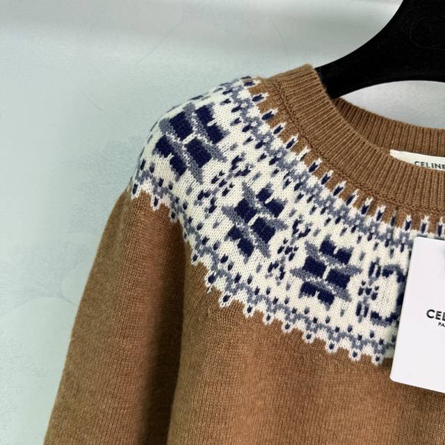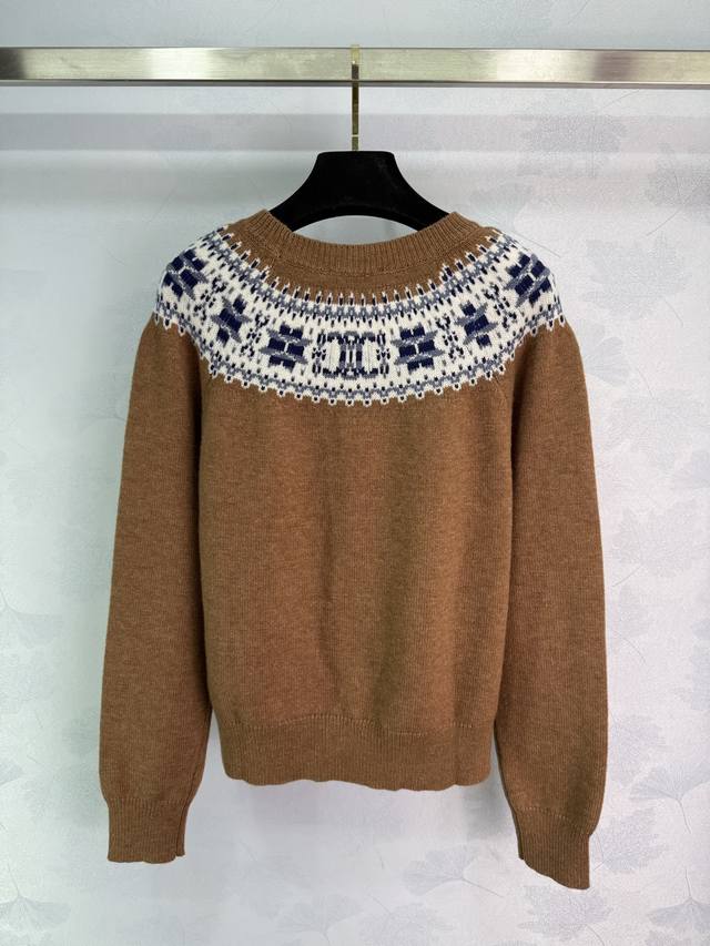 Ce*25 New early autumn brown knitted sweater with a blue and white snowflake pattern on the chest. The wool material is warm and comfortable, showing off your temperament. The retro style adds an elegant touch to the upper body, and the details echo the exquisite and fashionable feeling, making it suitable for dating and commuting! 2 colors and 3 sizes Sml