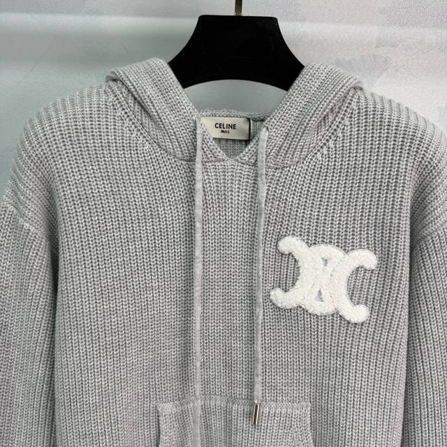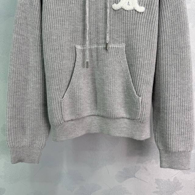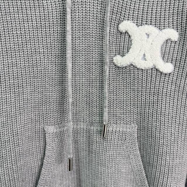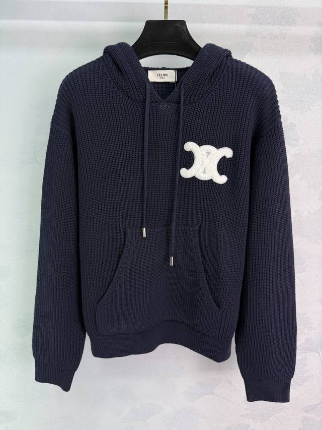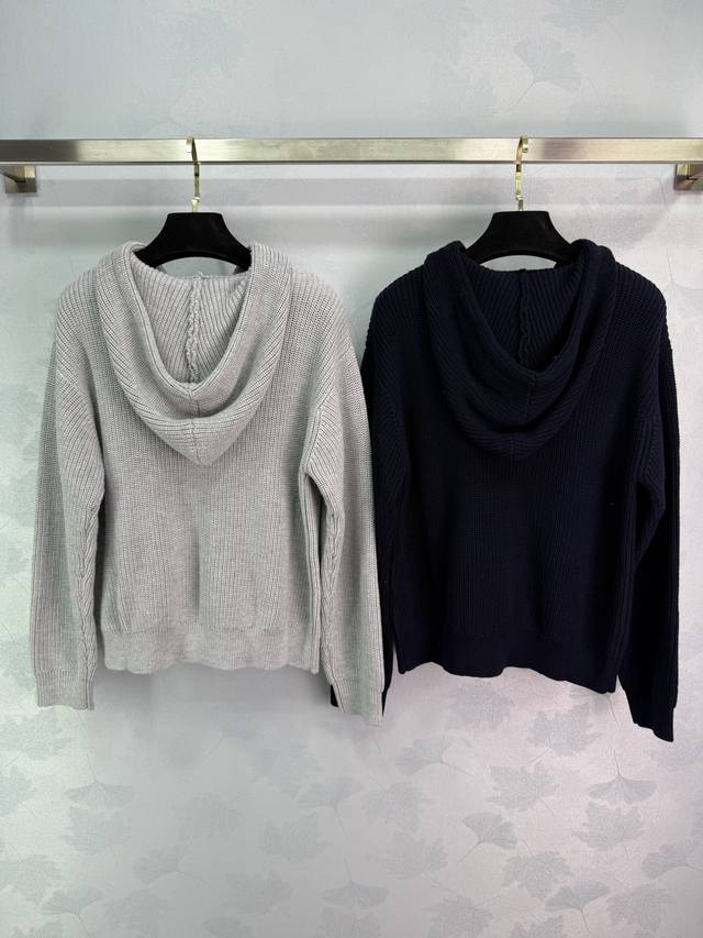 Ce*25 New Early Fall Hooded Knit Sweater with White Logo Embroidery on the Chest. Made from a 30% cashmere and 70% wool blend, it's soft and refined. The hooded pullover design and long sleeves are versatile and practical, offering a sophisticated, casual look perfect for everyday travel or leisure activities! Available in 2 colors and 3 sizes. Sml T226B.