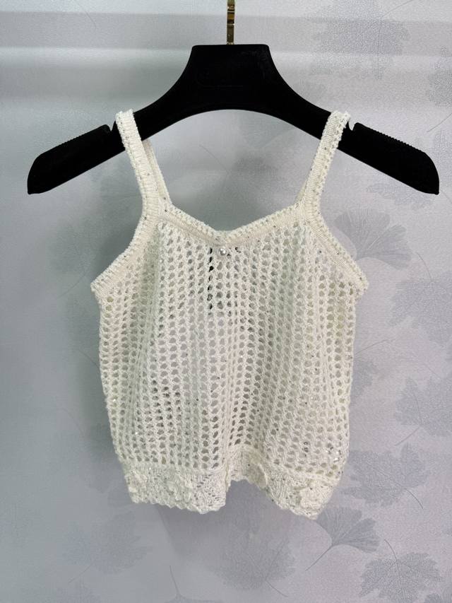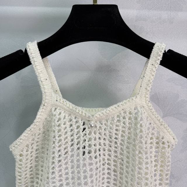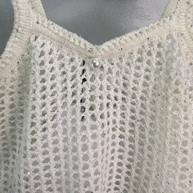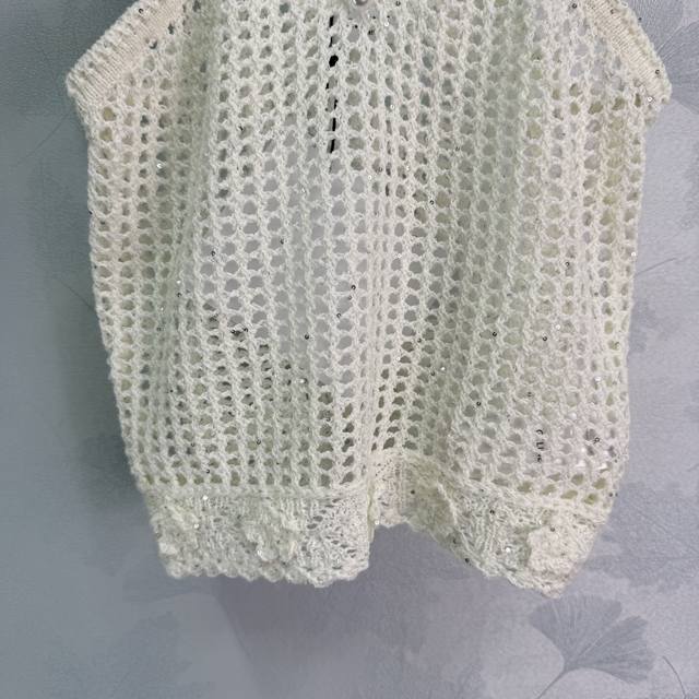Ce*25 New hollow knitted vest with exquisite crochet craftsmanship, decorated with rhinestone flowers, matched with a cardigan in the same color, highlighting the figure and making it look thinner. It is fashionable and versatile, suitable for all ages and skin colors, and has a fashionable and retro style! 2 colors and 3 sizes Sml T226B.