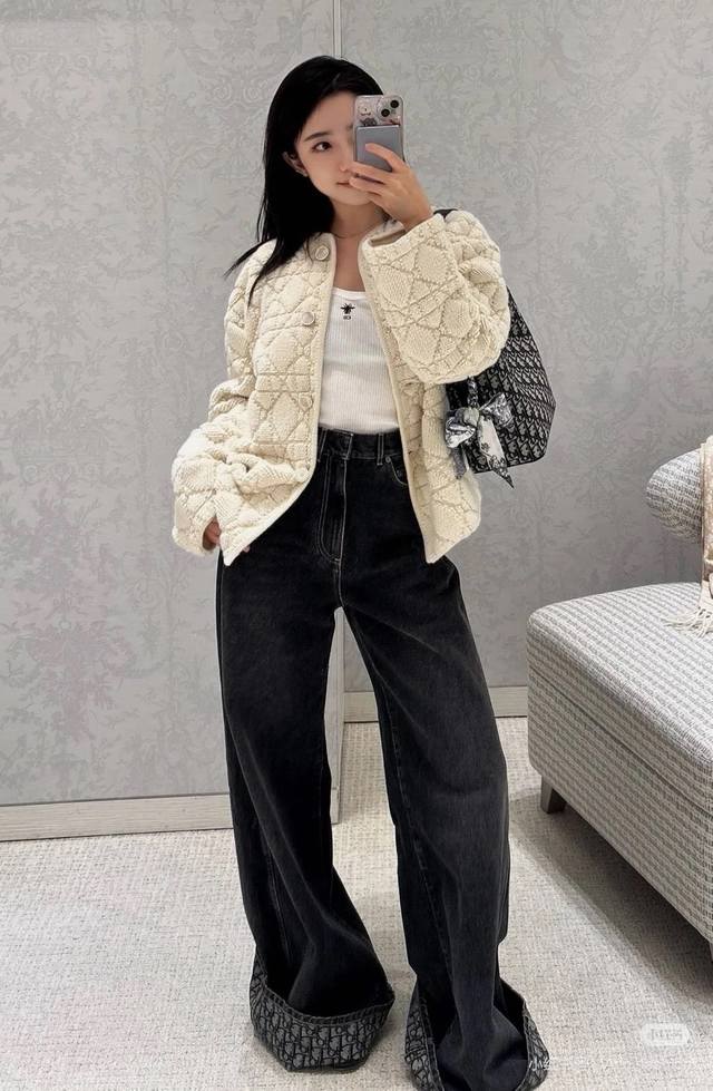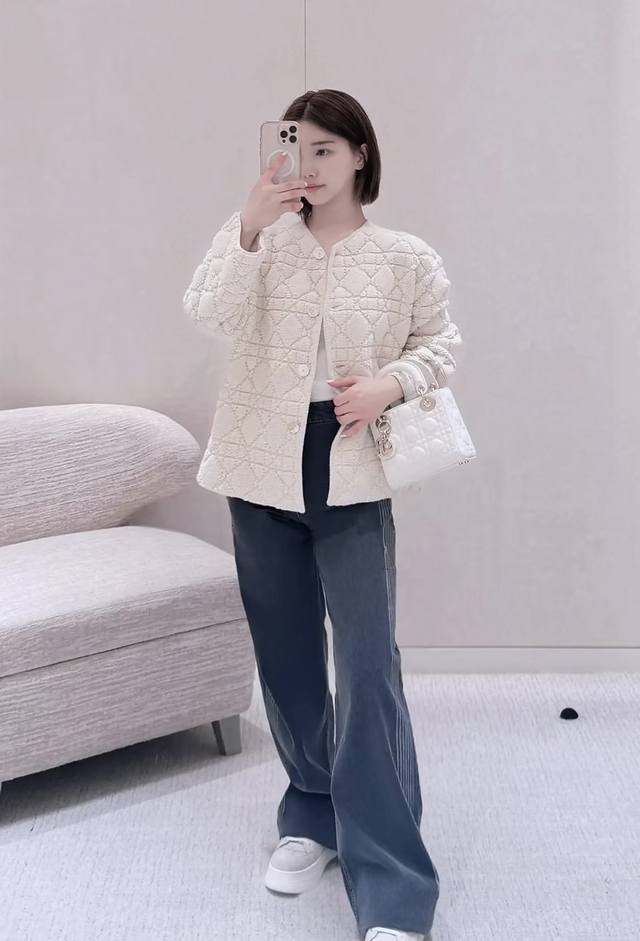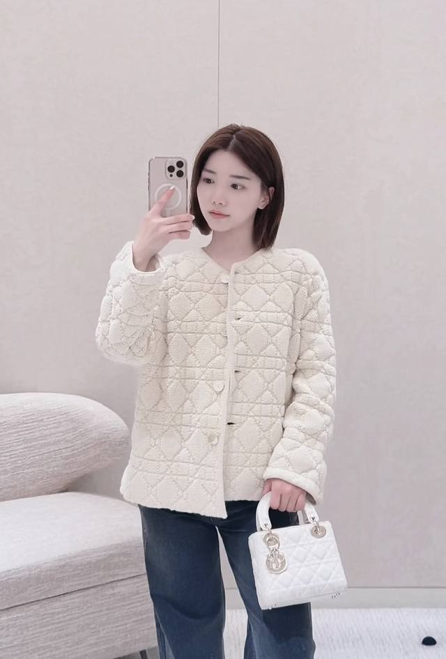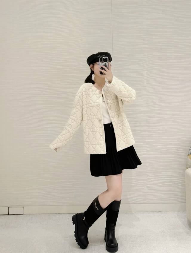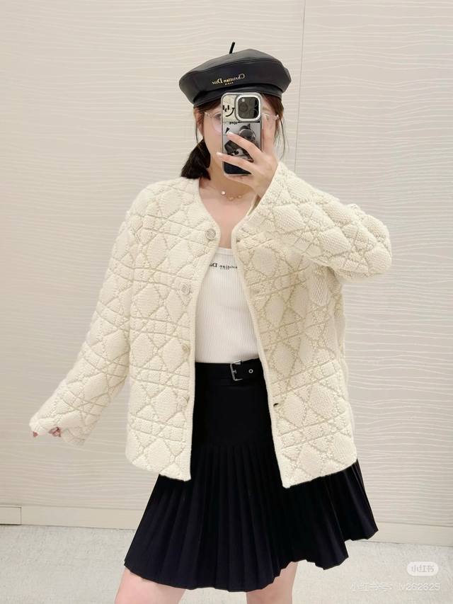 Celebrity Dilraba Dilmurat's same style Dio* New high-end custom cashmere and wool blend yarn knitted fabric, original mold engraved letter logo buttons, 3D diamond pattern mid-length knitted cardigan thick coat! Apricot color, sizes 36, 38, 40. Size F38: Shoulder width 51cm, Bust 104cm, Sleeve length 56cm, Length 70cm.