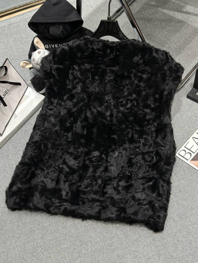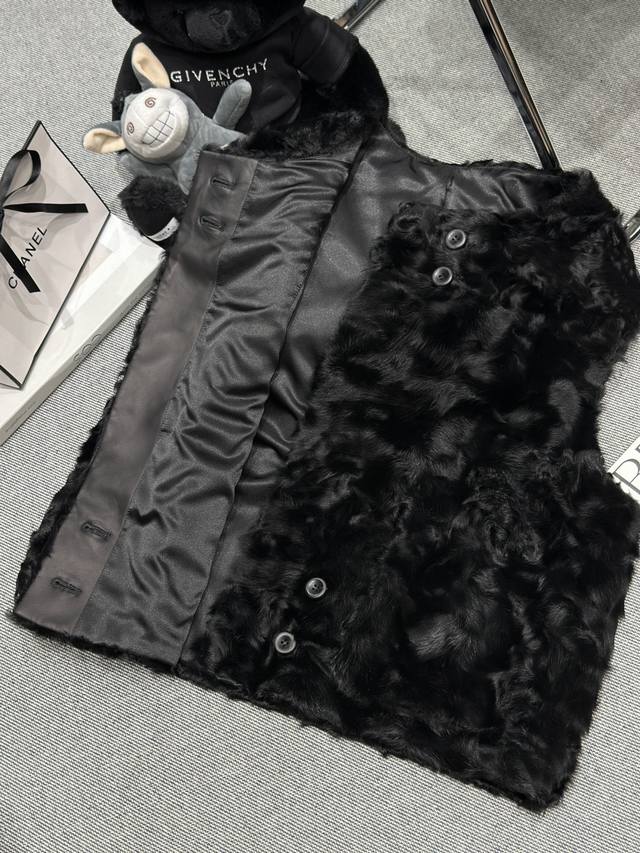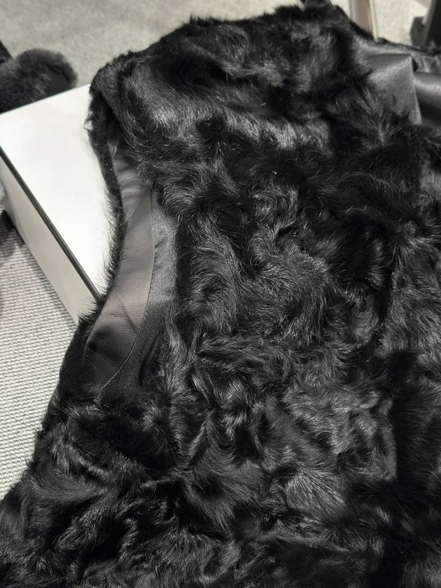 Celin* 2025 Autumn/Winter Little Lake Sheepskin Vest, made of lambskin, with short, coarse wool that clings tightly to the leather, creating a natural wavy, distinctly curly look. The design is stylish and chic. Smlxl DDD