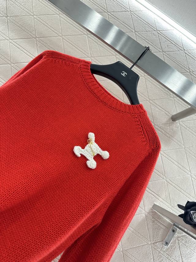 Safety Pin Round Neck Pullover Sweater. Made of custom Yb wool knit, this sweater is premium, comfortable, and soft. The round neck pullover features ribbed hems at the collar and cuffs that match the hem. A contrasting safety pin accents the chest, creating a relaxed, stylish look that highlights the brand's signature style. The wool knit fabric is warm and comfortable, and the regular fit is a versatile, everyday style for fall and winter . Customized fabrics and accessories are available in two colors.