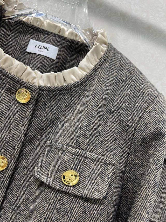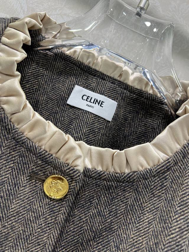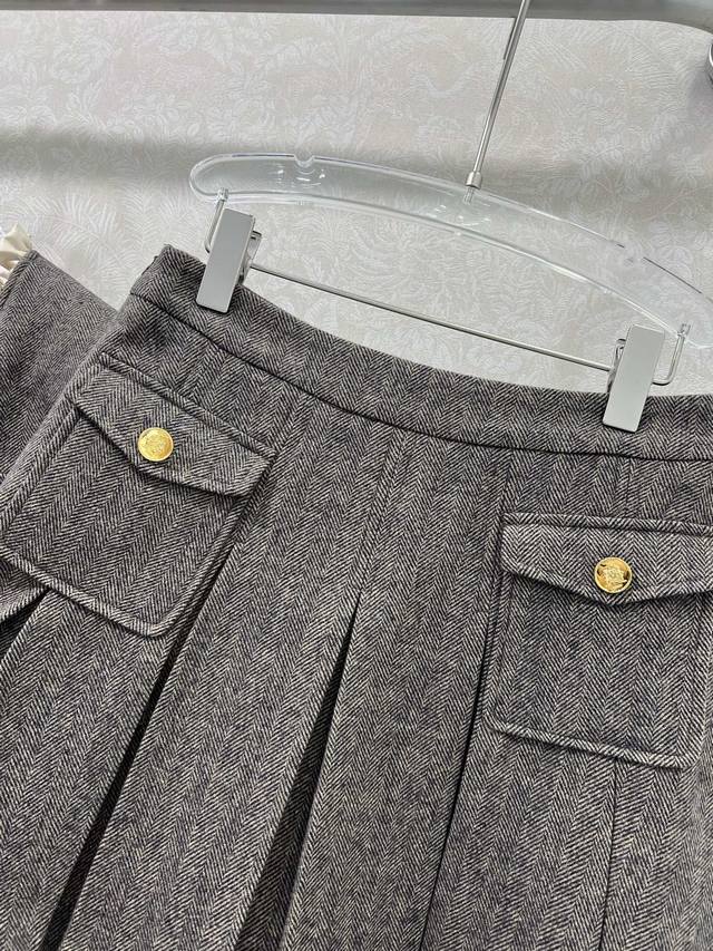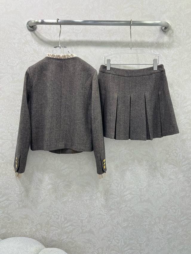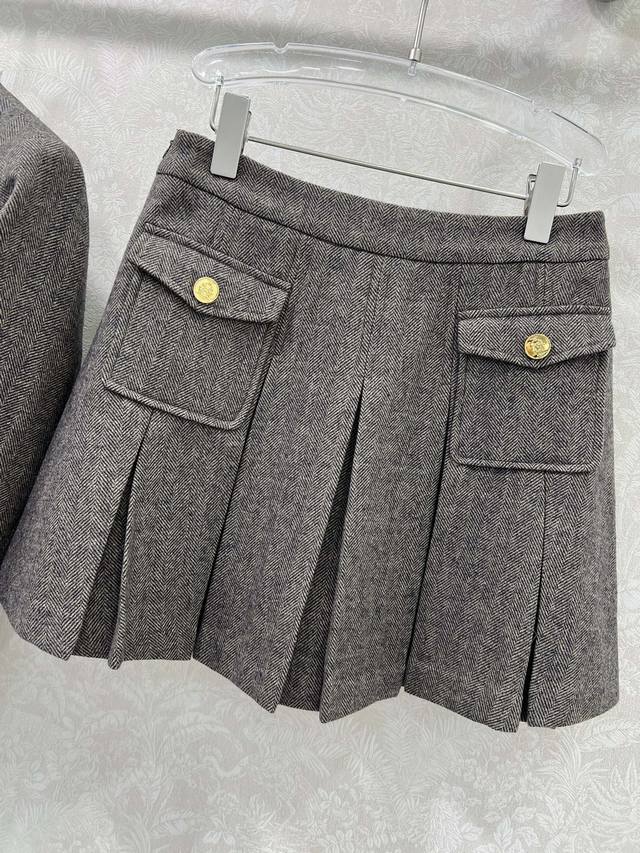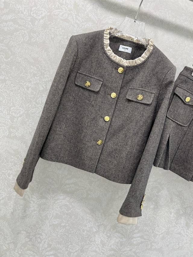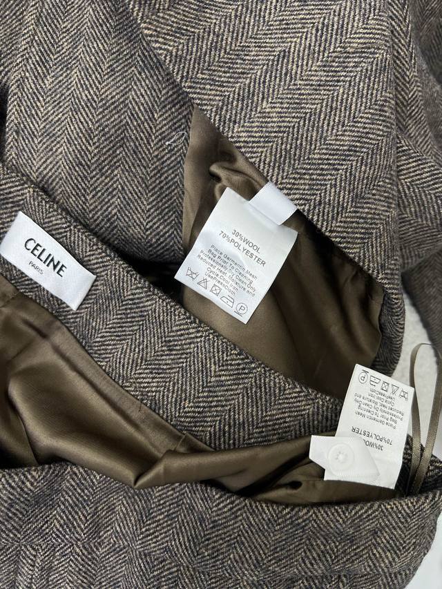 Celin* 2025 New Set Includes Wool Coat and Pleated Skirt. Super popular Maillard color scheme, old-money style. Custom-made Arc de Triomphe hardware coat with custom satin lace trim on collar and cuffs. Casual and chic. The herringbone wool fabric has a substantial feel, exuding a classic, sophisticated aura. The pleated A-line skirt accentuates long legs. A set adored by countless bloggers. Fitted design, slimming and flattering, with a relaxed and warm feel. Primarily practical and stylish. Sold as a set in single color in 3 sizes: S, M, L, B, D, D.