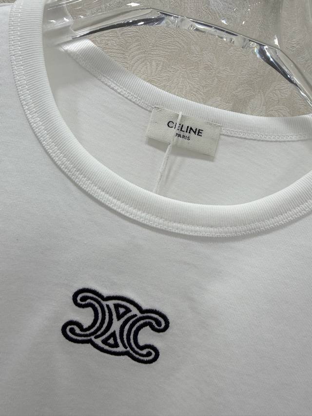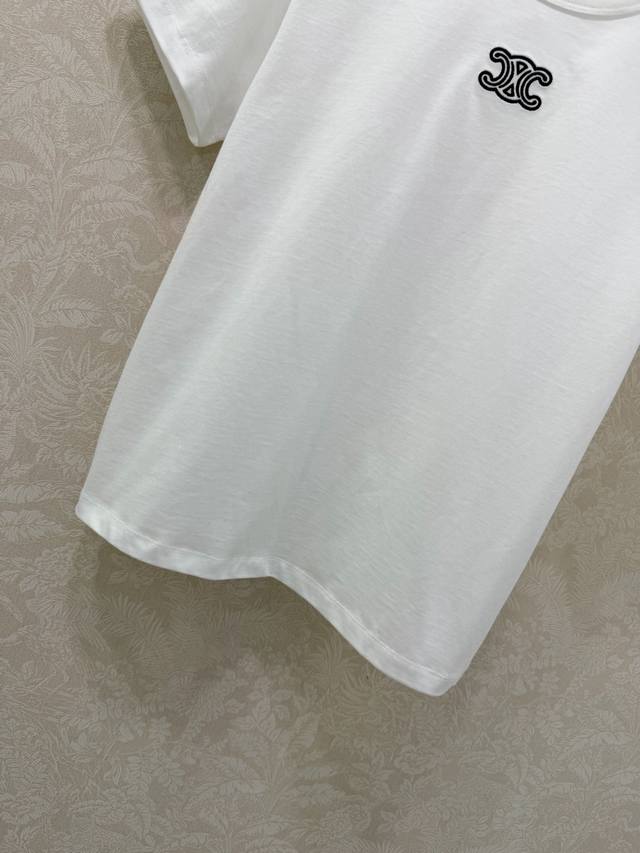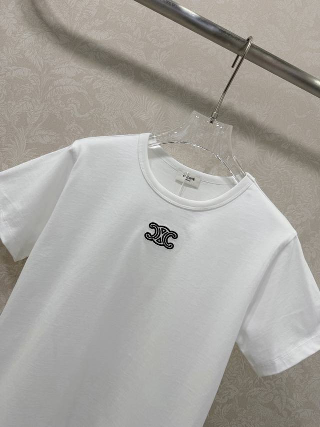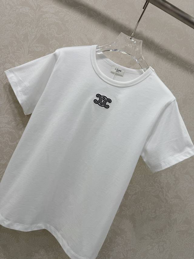 Celin* 2026 Early Spring New Arrival Triumphal Arch Embroidered Stretch Short-Sleeve T-Shirt, High-Quality Fit! Made of high-elastic pure cotton fabric, it fits snugly without being tight; soft yet not sagging, perfect for wearing alone or layering in early spring to accentuate a clean silhouette; round neck short sleeves + exquisite Triumphal Arch embroidery on the chest, details that will appeal to brand enthusiasts; slim fit with slight stretch, concealing any unwanted curves while highlighting a slender figure; minimalist texture blended with a relaxed everyday feel, available in black and white to suit all styles. In stock, 4 colors, 3 sizes available. Smlb. DDD