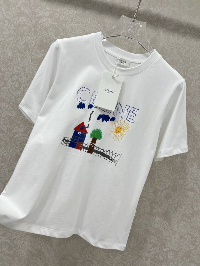 Celin* 25 New style childlike graffiti print round neck slim short sleeve T-shirt ح Exclusively developed by Yb! High version! Full of fun to break the monotony, the whole upper body is a young girl! Walking on the street, it is full of attention! Youthful and energetic feeling, good tolerance, hides flesh and makes you look thin! Both beautiful and comfortable! Wear it on the street, the rate of turning heads is 100%, the texture of the heavy washed pure cotton fabric is super comfortable! Just close your eyes and go for it! Available in 4 colors and 3 sizes Sml B.