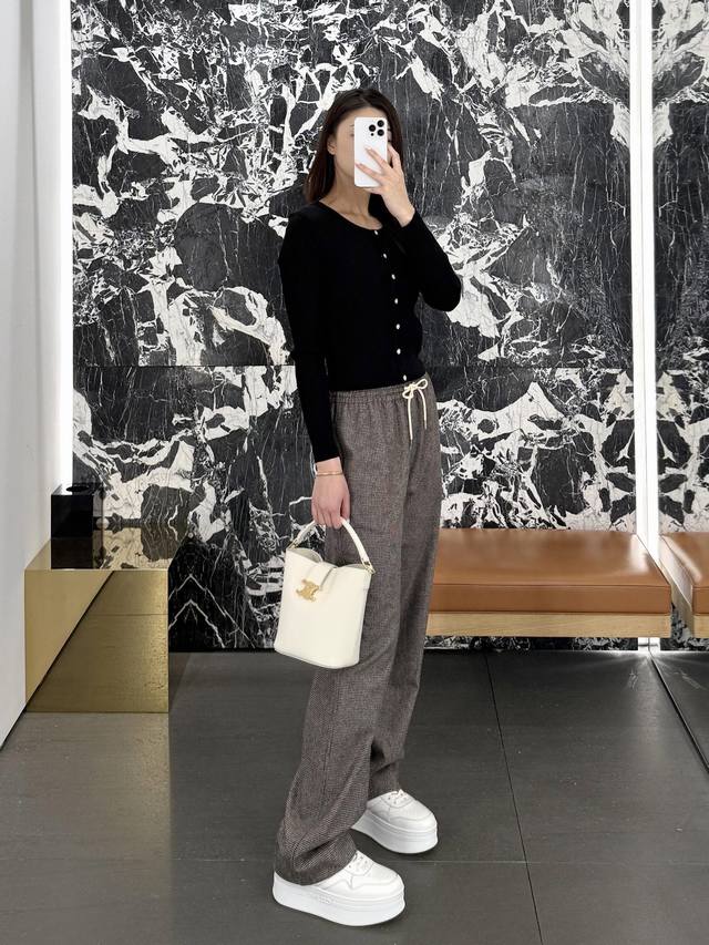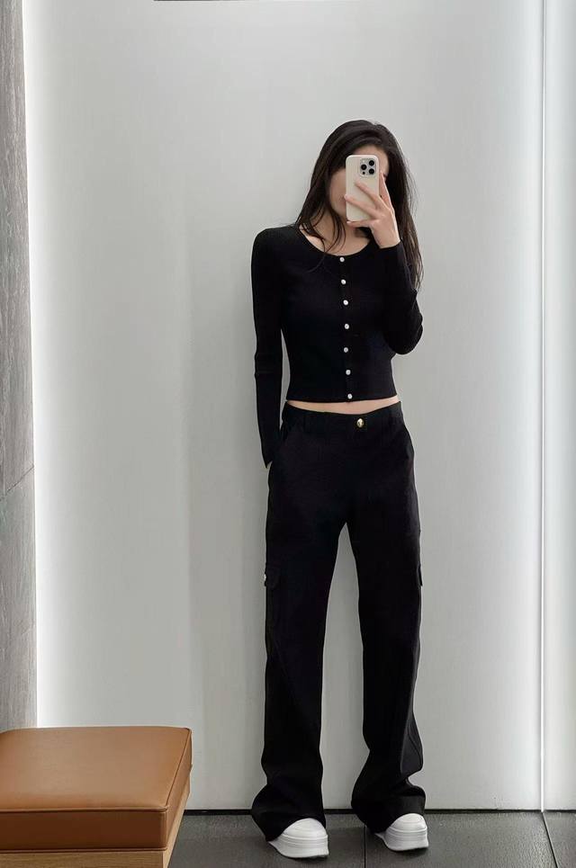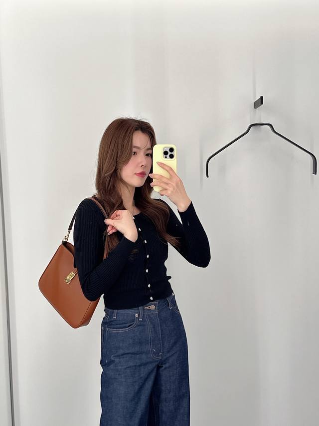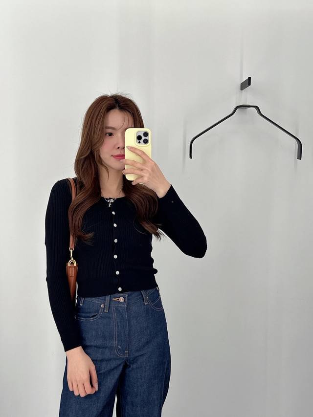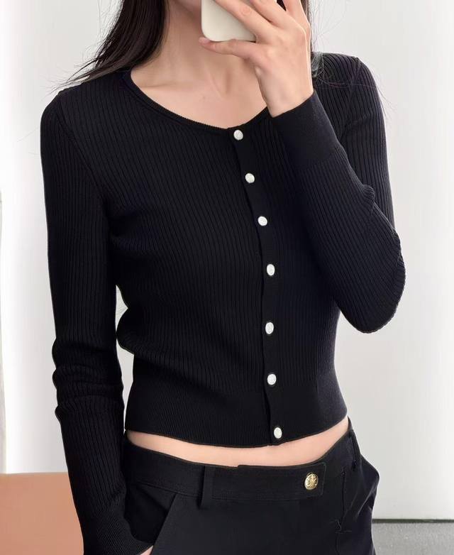 Celin* 25Fw Autumn/Winter New Black Slim Fit Wool Knit Crew Neck Cardigan | Exclusive Yb Development! High-Quality Production! Made of wool knit fabric with a fine vertical ribbed texture, combining softness and a slimming effect; the cropped cut optimizes body proportions, revealing the waistline for a more streamlined look. The combination of a crew neck and Arc de Triomphe pearl-textured buttons retains the gentle feel of a knit cardigan while enhancing its sophistication through simple lines, suitable for various styles. Available now in SML DDD