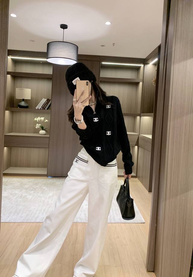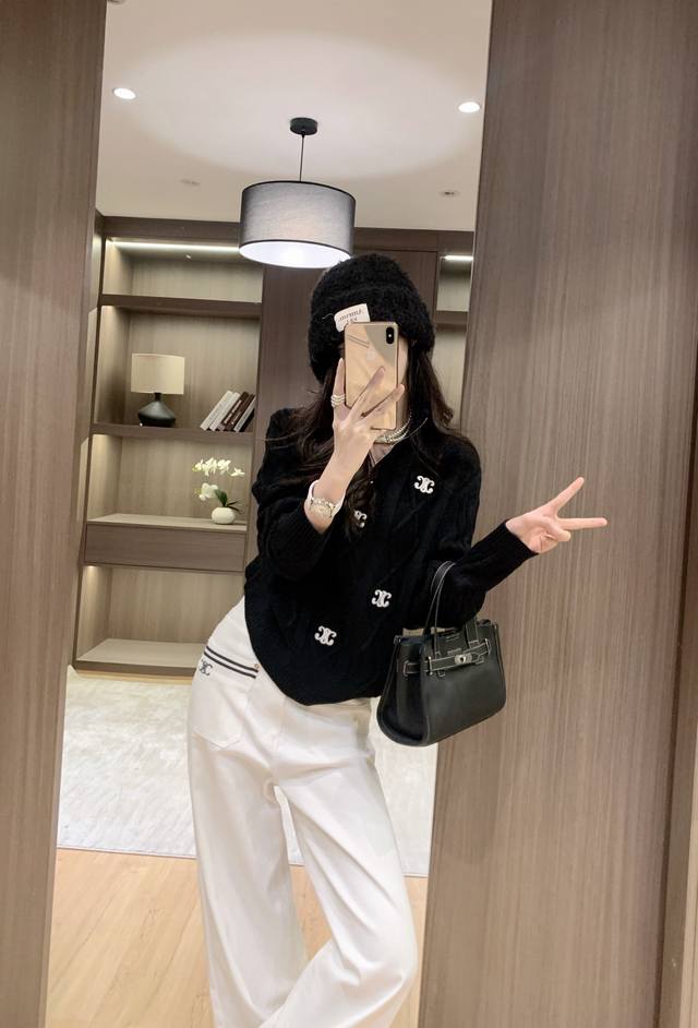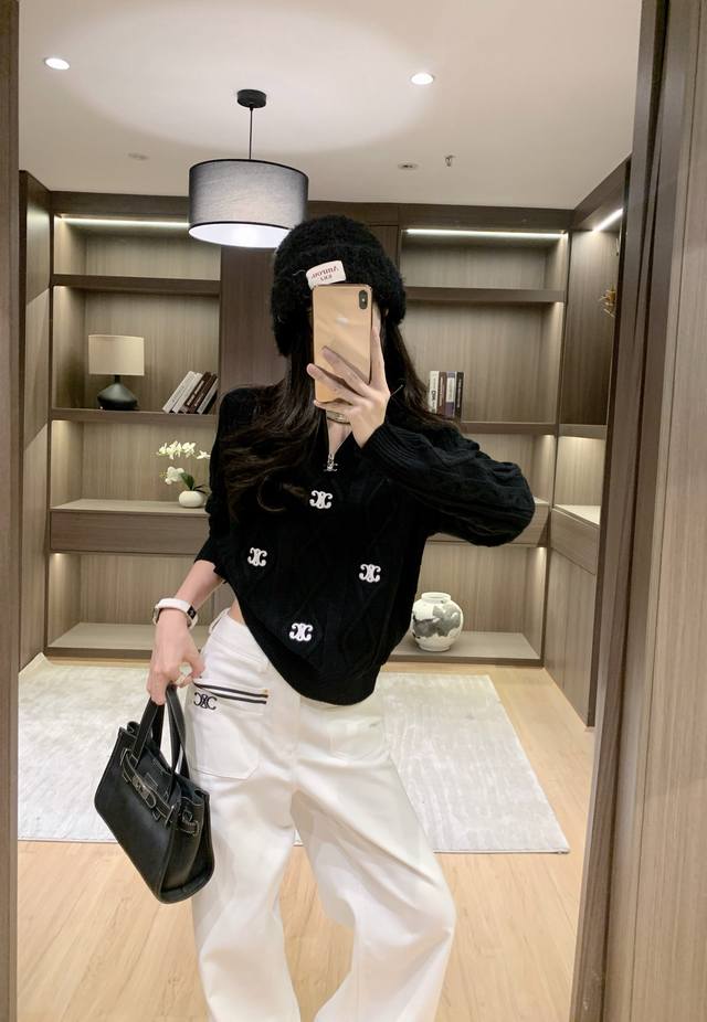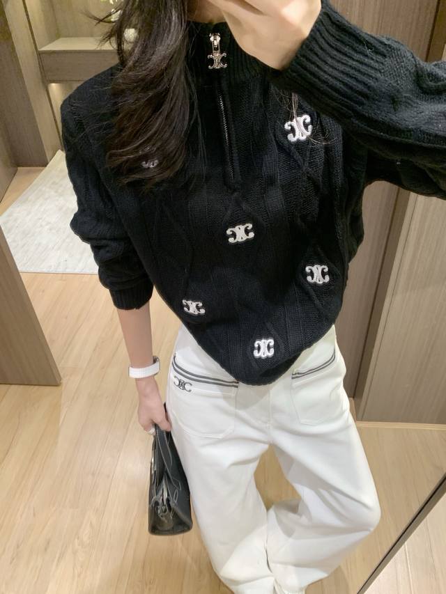 Celin* Early Autumn New Embroidered Arc de Triomphe Polo Neck Knitted Sweater