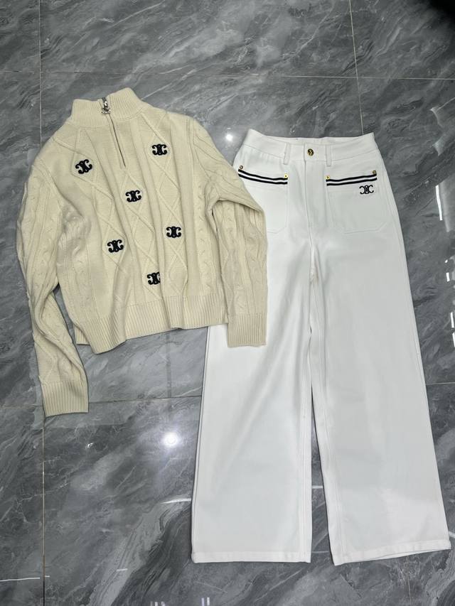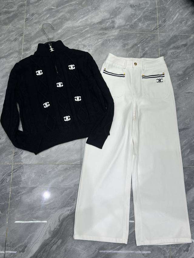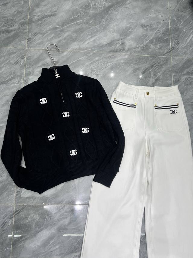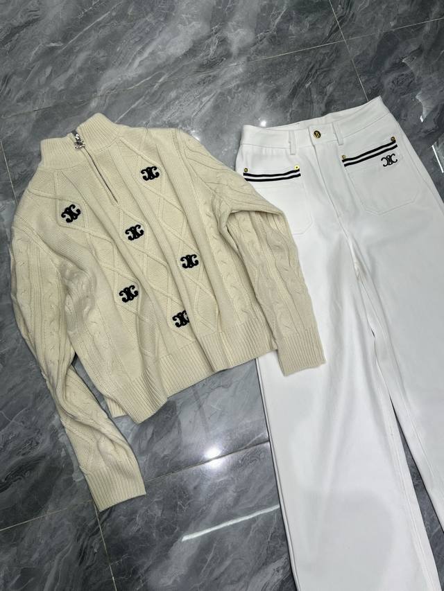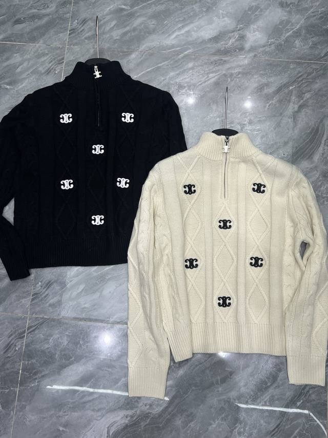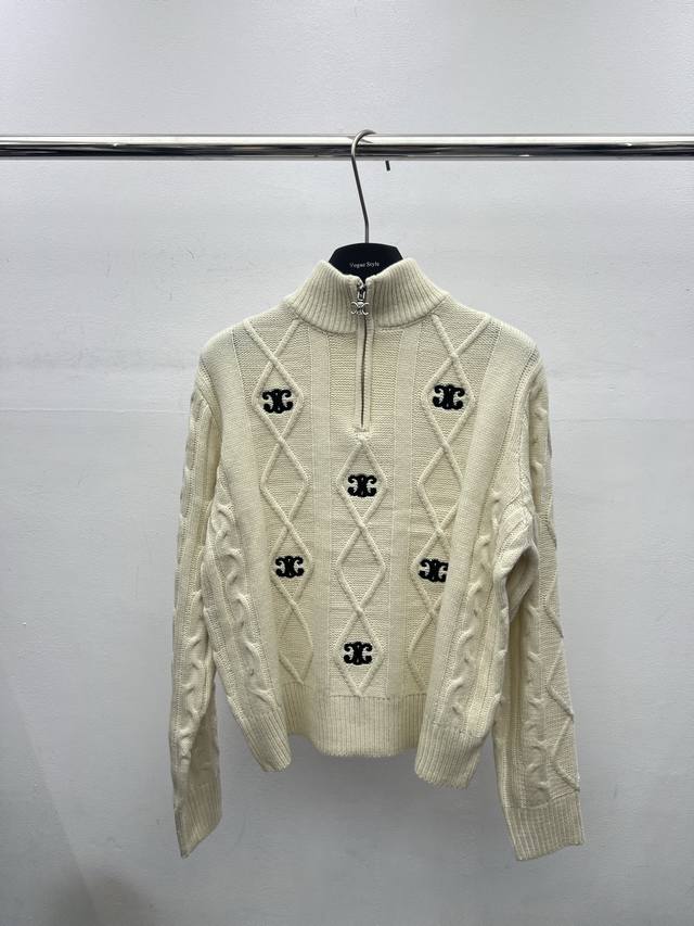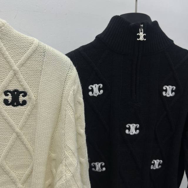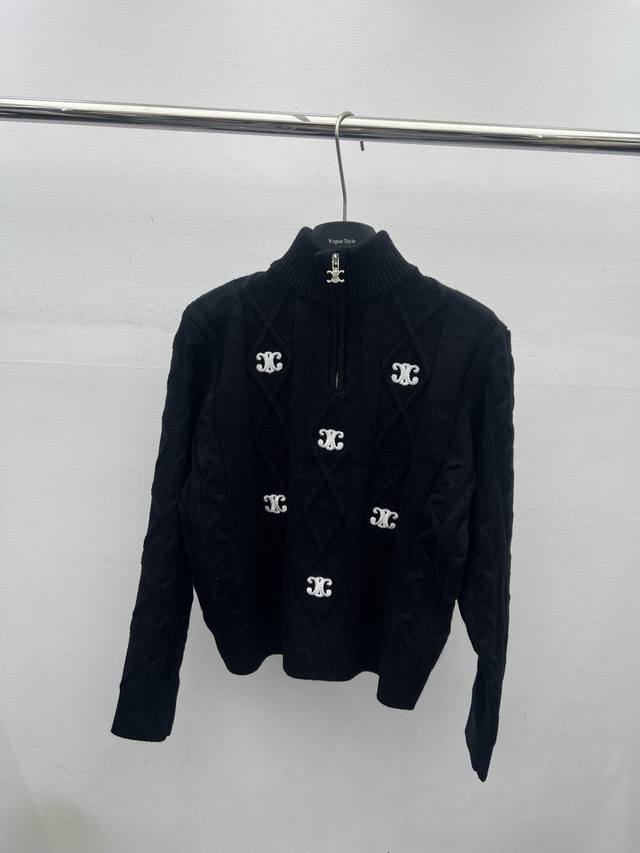 Celin* Early Autumn New Embroidered Arc de Triomphe Polo Neck Knitted Sweater