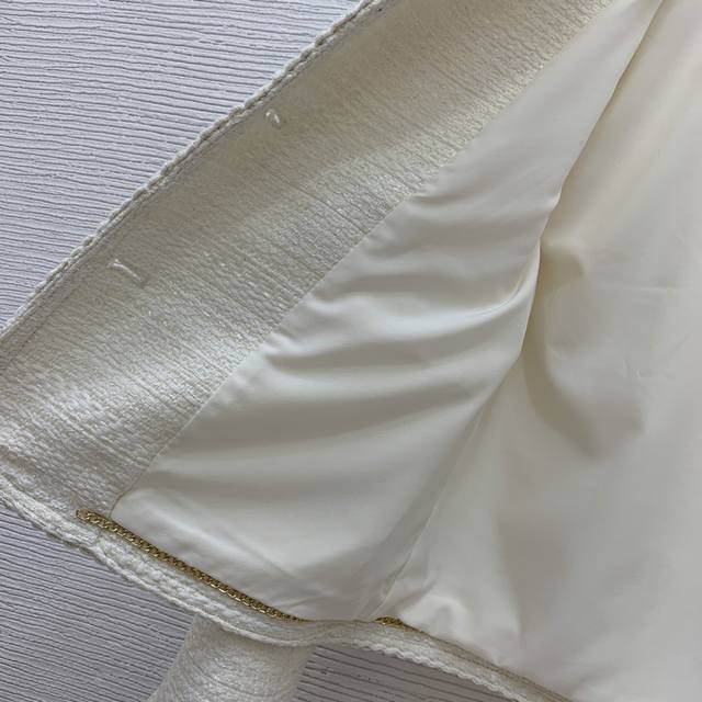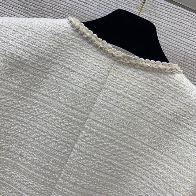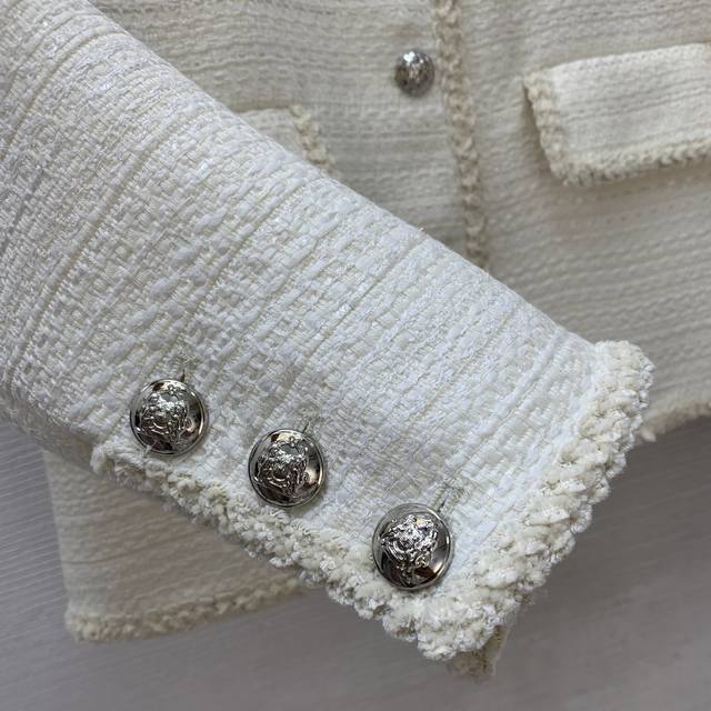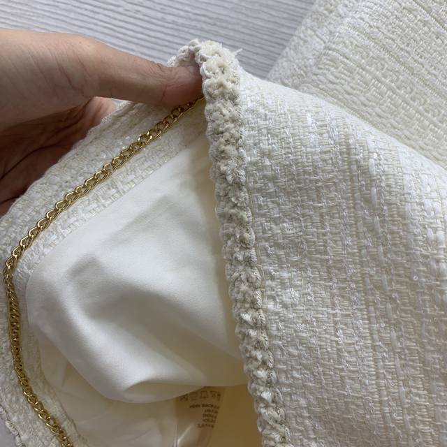 Celin* New high-end custom mixed-color coarse wool fabric, metal chain stitched on the inside of the hem, stylish drape! Cable knit flap pockets, fashionable short round neck long sleeve Chanel-style jacket! Off-white, size M: shoulder width 38 with shoulder pads, bust 96, sleeve length 57, length 55.