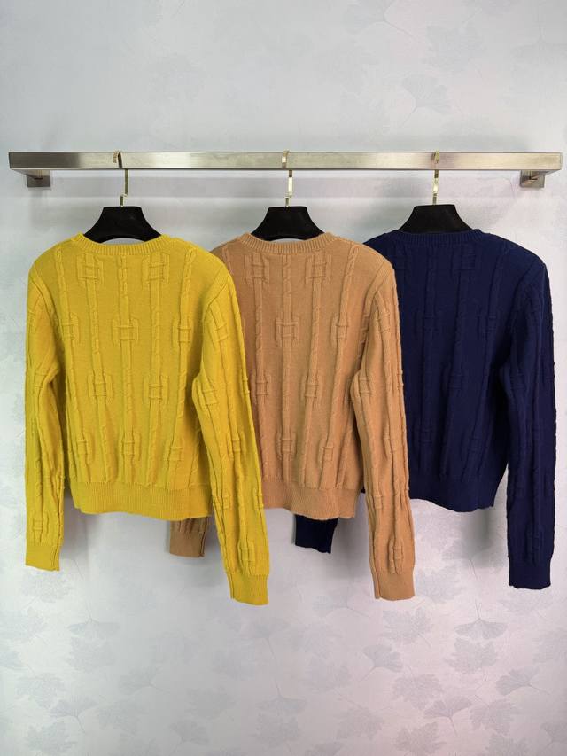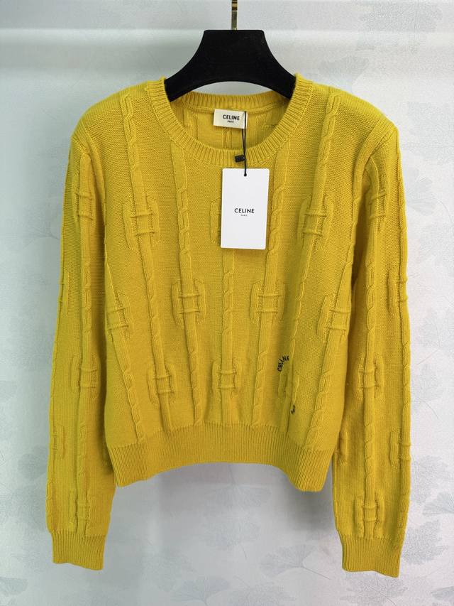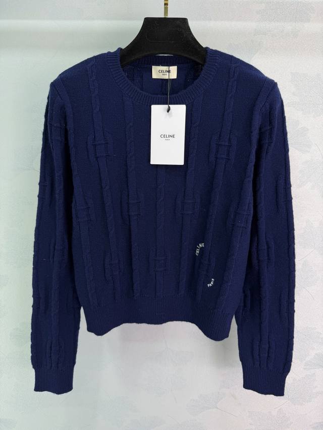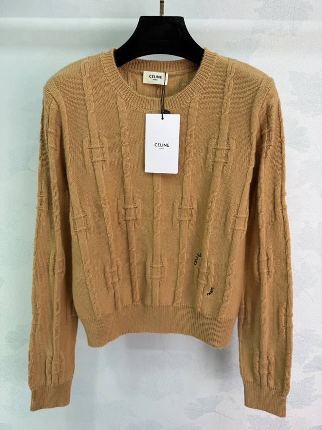 Celin*2025 Autumn/Winter New Round Neck Crochet Letter Pullover Sweater, custom-made Yb wool yarn, high-quality texture, comfortable and soft. Round neck, long sleeves, dense knit for warmth and wind protection. Vertical ribbed trim on the neckline and cuffs echoes the hem. Vertical chain-style square buckle on the body, and a single-sided letter logo on the hem, adorned with the word "paris," showcasing a high-end positioning and fashionable style. Regular fit with structured shoulders, available in three colors to create an autumn/winter atmosphere, making the style more timeless and versatile! 3 colors, 3 sizes: S, M, L, T226B, DDD