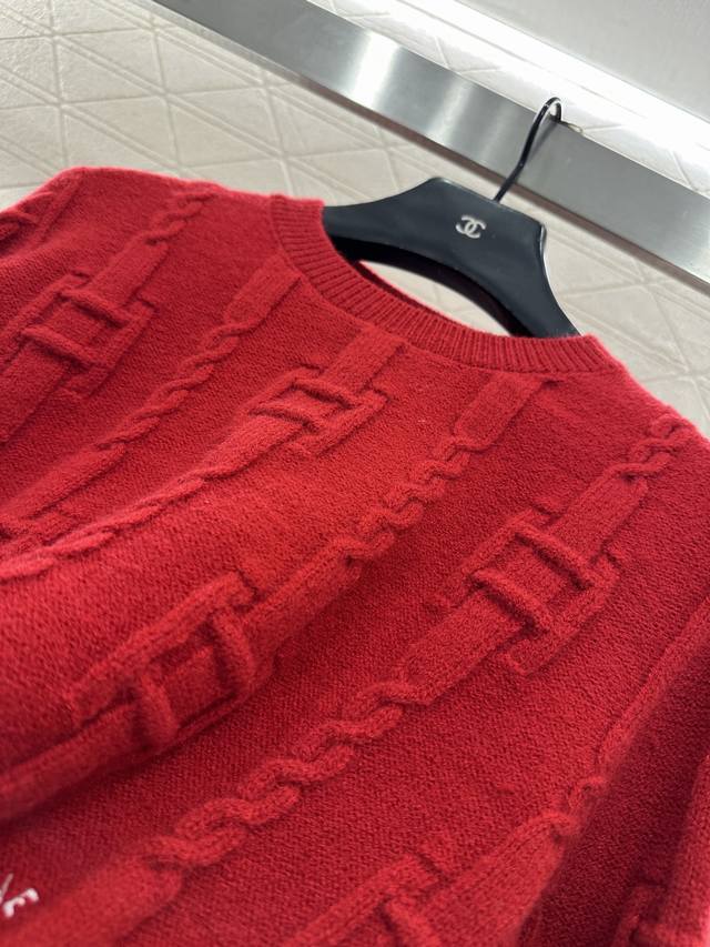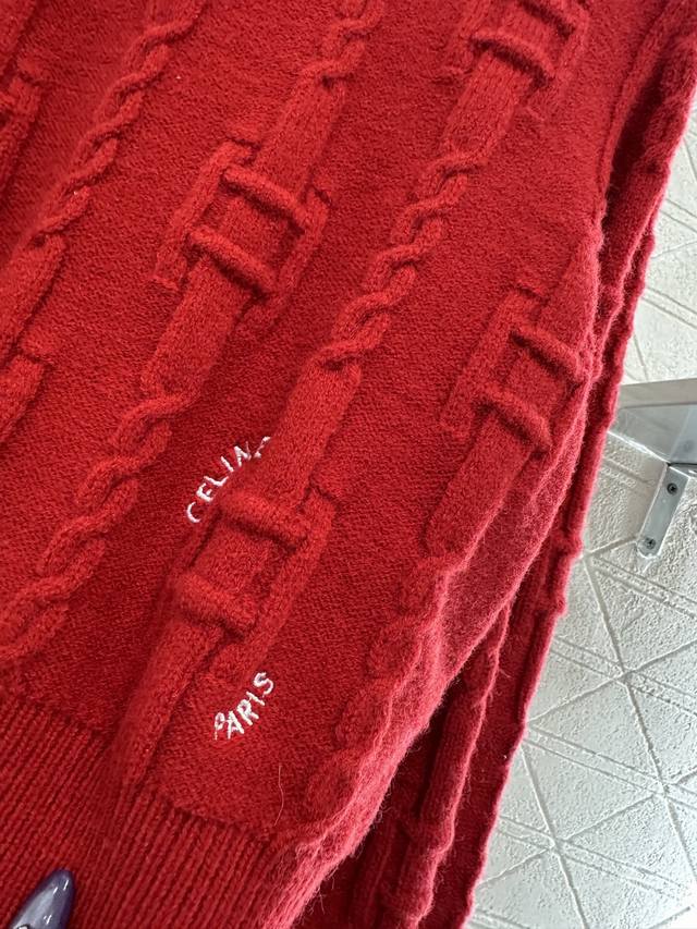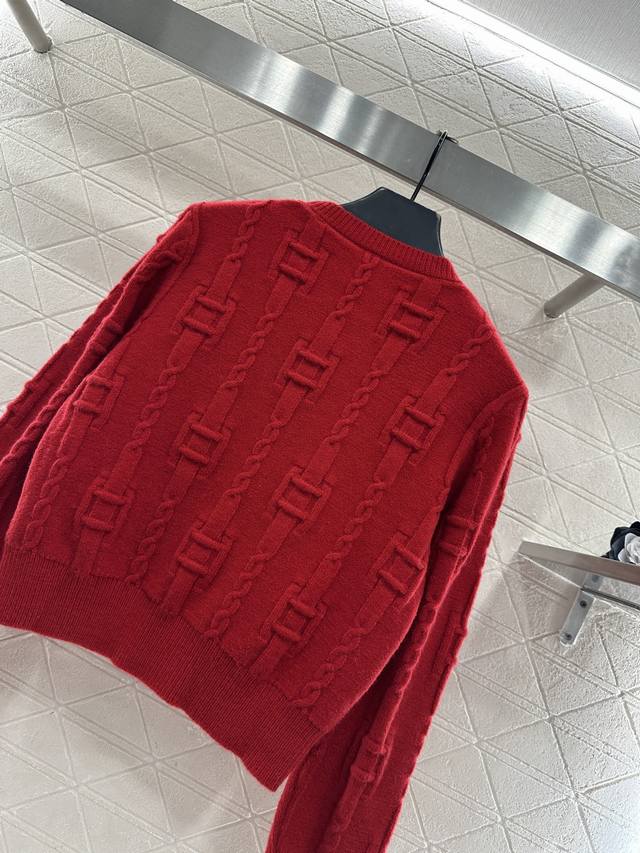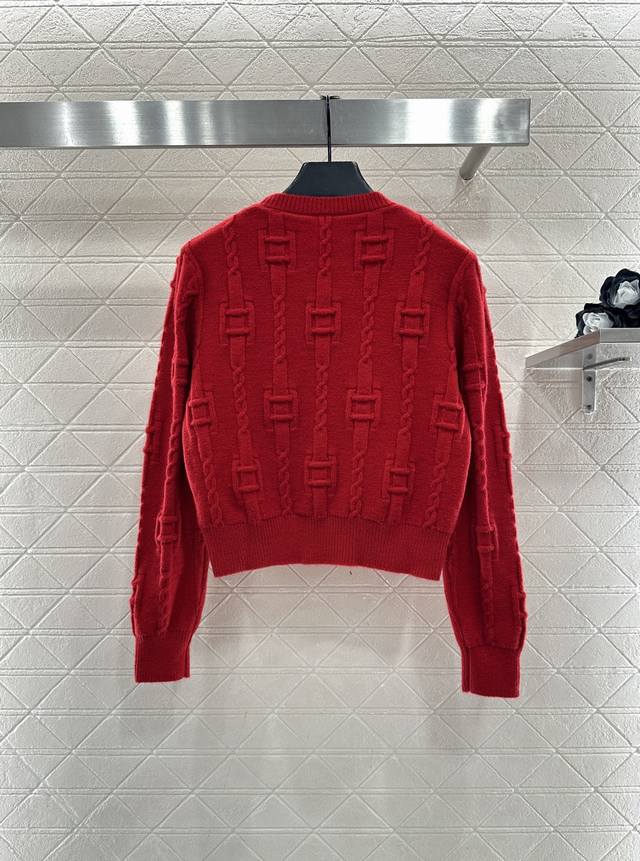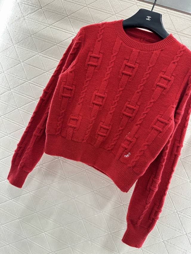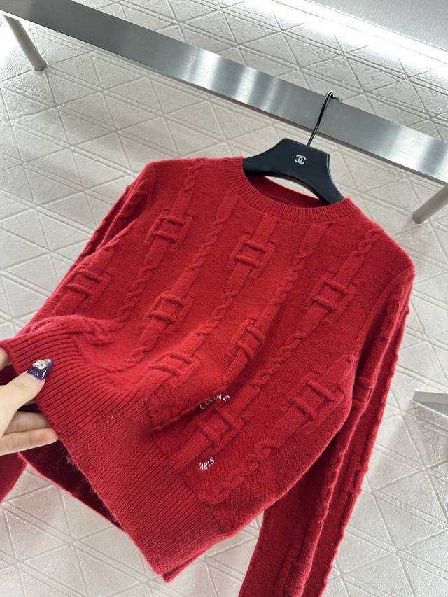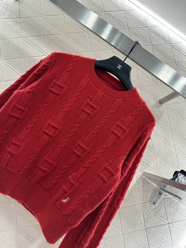 Celin*2025 New Arrival: Ddd Crew Neck Crochet Letter Pullover Sweater. Made with custom Yb wool yarn, this high-quality sweater is soft, comfortable, and features a crew neck and long sleeves. The dense knit provides warmth and wind protection. Vertical ribbed trim on the neckline and cuffs echoes the hem. A vertically arranged chain with square buckles adorns the body, and a single-sided letter logo at the hem, complemented by the word "paris," showcases a high-end positioning and fashionable style. This is a regular fit with a structured shoulder design. A new red version is available to create an autumn/winter feel, making the style more timeless and versatile. Custom fabrics and accessories are available; please check the version number. The new red version is also available. DDD
