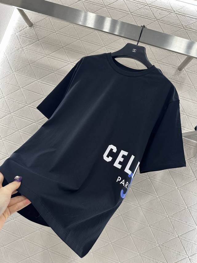 Celin*2025 New Arrival DDD Crew Neck Printed Logo DDD Custom Yb virgin cotton material, breathable and comfortable, with a rich texture. The loose short-sleeved T-shirt cut highlights the brand's style. Made from high-quality pure cotton, it has a beautiful drape, creating a slimming and fashionable look. The waist print outlines the iconic Arc de Triomphe logo, echoing the letter print. The color contrast and layering enhance brand recognition, instantly creating a fashionable and sophisticated look. It's stylish and relaxed, perfect for wearing alone or layering. Custom fabrics and accessories, look for the high-quality version. Two colors: black and white. DDD