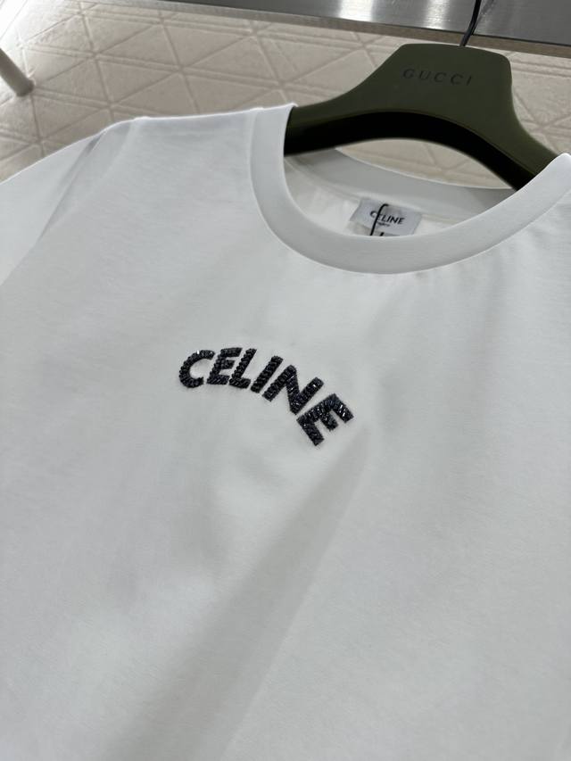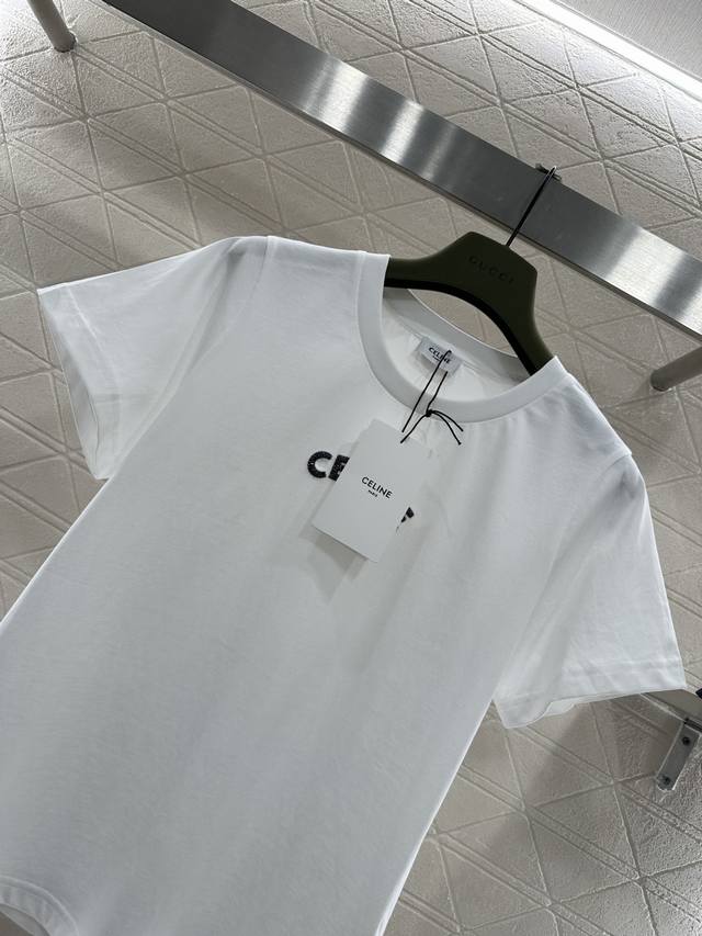 Celin*2026 New Arrival Ddd 3D Beaded Logo Ddd Custom Yb Mercerized Cotton Material, Breathable and Comfortable, High-Quality Texture, Slim Fit Short Sleeve T-Shirt. The chest features embroidered details, creating a three-dimensional beaded effect that outlines the logo, enhancing brand recognition and creating a high-end fashion style. Customized Fabrics and Accessories, High-Version, Two Colors: White and Black DDD