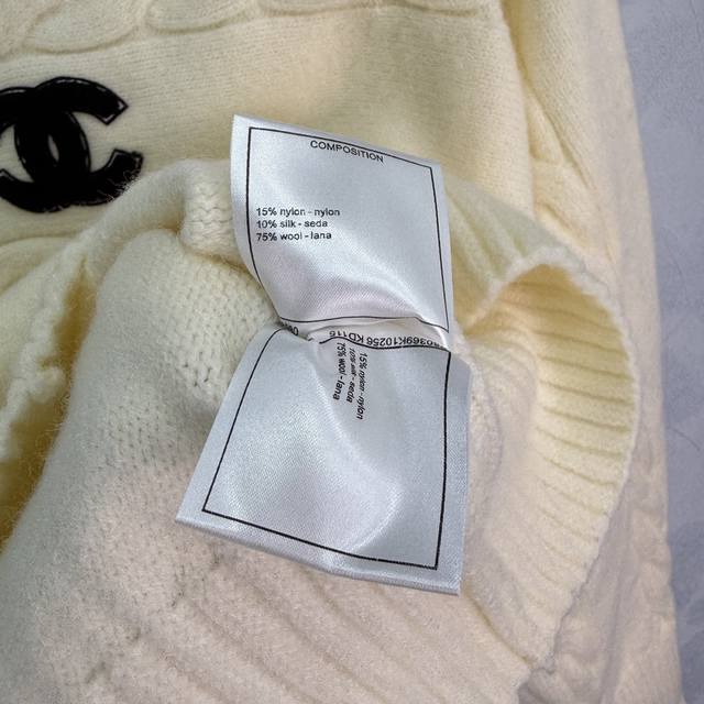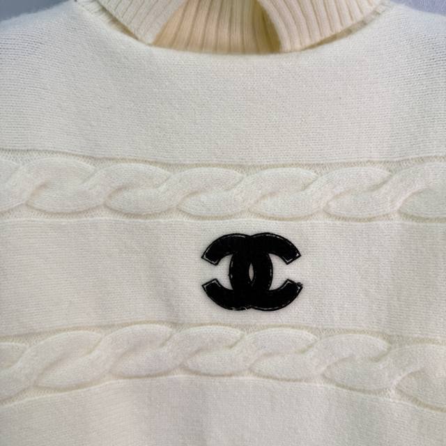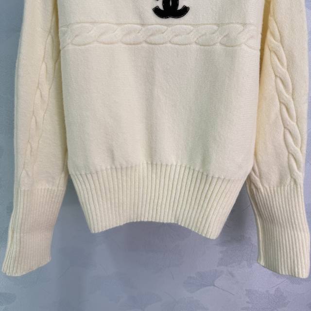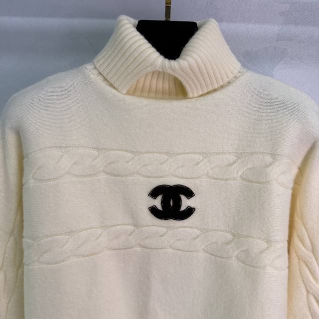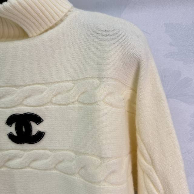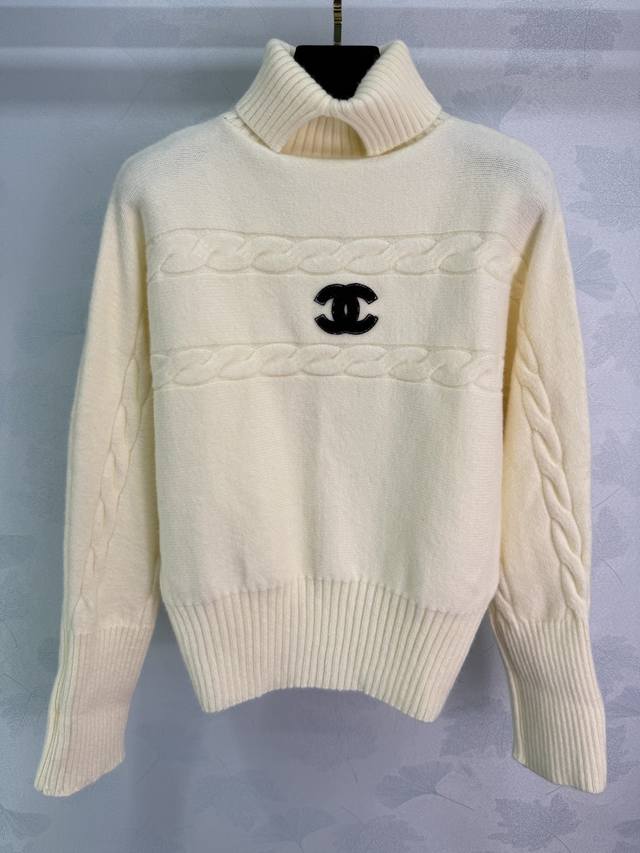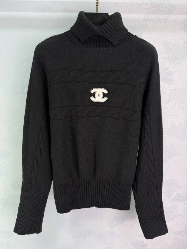 Ch* 2025 Autumn/Winter New High-Neck Knitted Long-Sleeve Sweater! Custom imported wool knitted material, comfortable and soft. Cable knit textured terry cloth embroidery on the chest adds a touch of high-profile luxury. Loose fit, slimming and elegant. Perfect for autumn and winter, everyday wear, commuting, dates, and casual occasions. 2 colors, 3 sizes: S, M, L, T, 2, 6, B. DDD