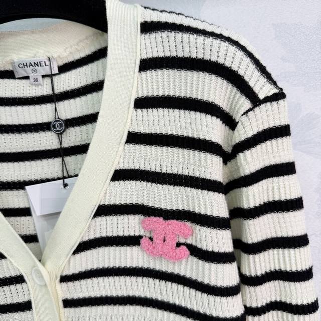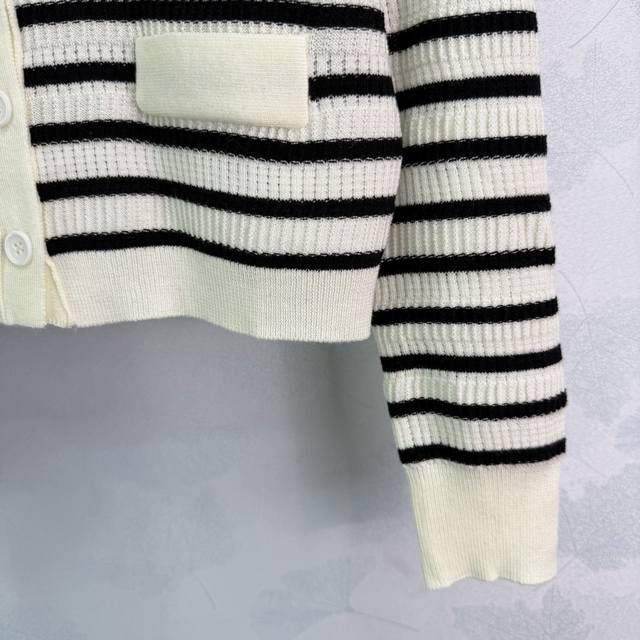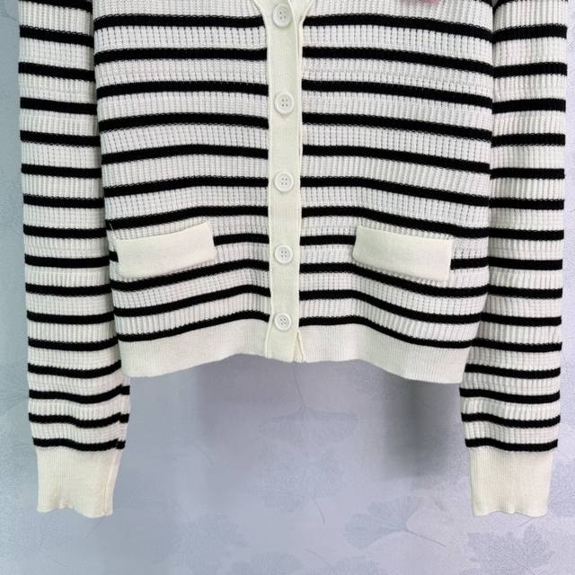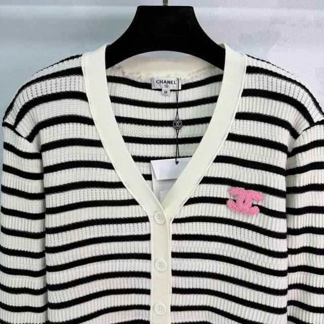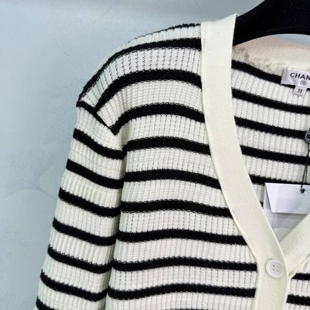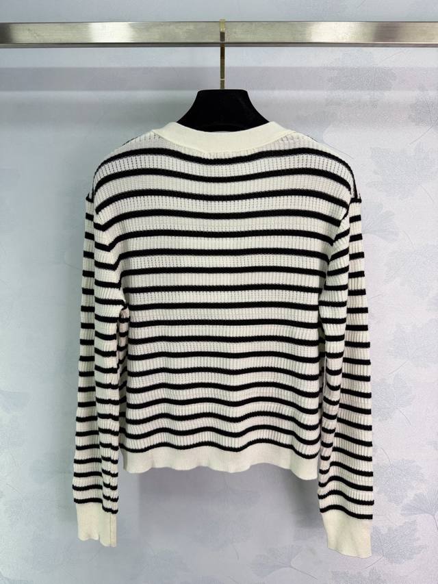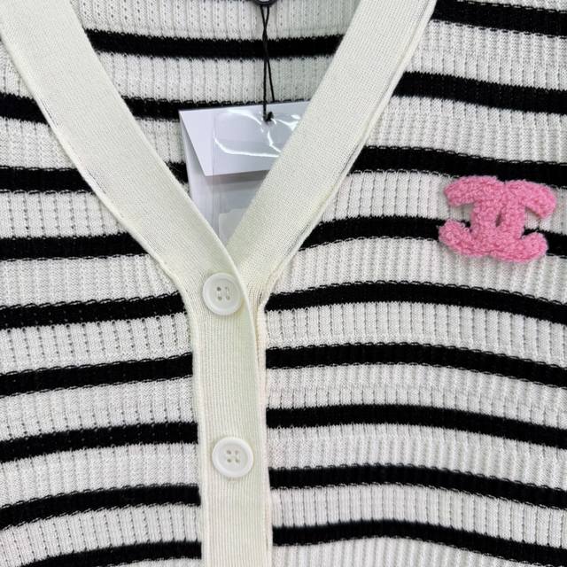 Ch* 2025 Autumn/Winter New Striped V-Neck Knitted Long-Sleeve Cardigan! Made with custom imported yarn, this high-quality, comfortable V-neck knitted long-sleeve cardigan features a flattering cut, contrasting stripes, and elastic fabric for a slimming fit. The entire cardigan is trimmed with matching trim, and features a plush double C pattern on the chest. It exudes a relaxed yet luxurious and fashionable vibe! Available in 1 color and 3 sizes: S, M, L, T226B. DDD