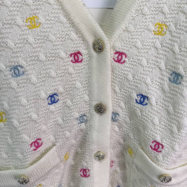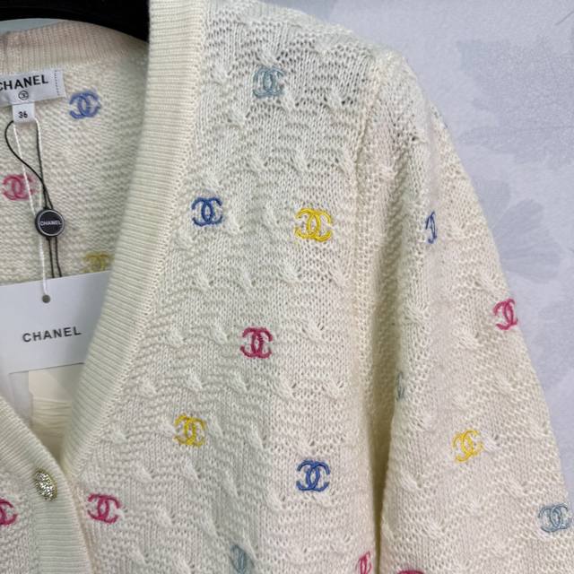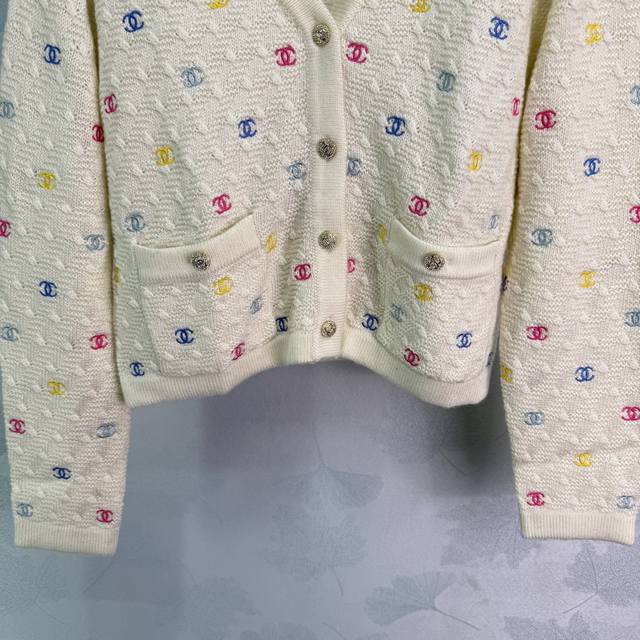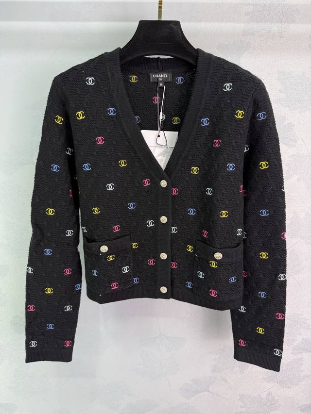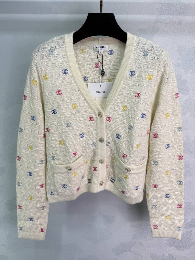 Ch* 2025 Early Fall new colorful logo embroidered small double C long-sleeved V-neck cardigan! The all-over logo embroidery and fresh macaron color scheme create a youthful and youthful vibe! The single row of iconic buttons adds a touch of luxury and adds a touch of flair to any outfit. The classic silhouette is versatile and a must-have for every woman! 2 colors, 3 sizes Sml T226B