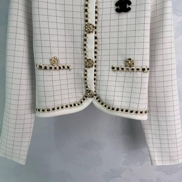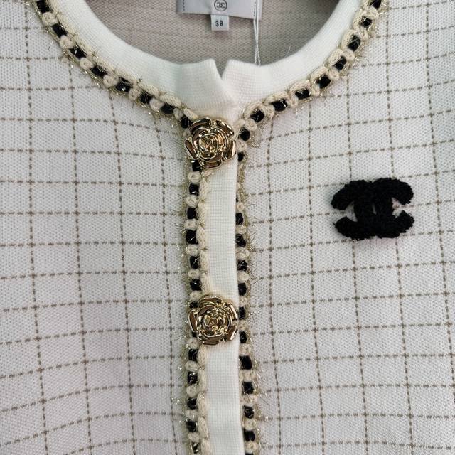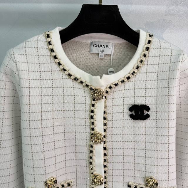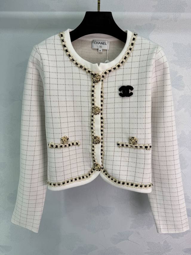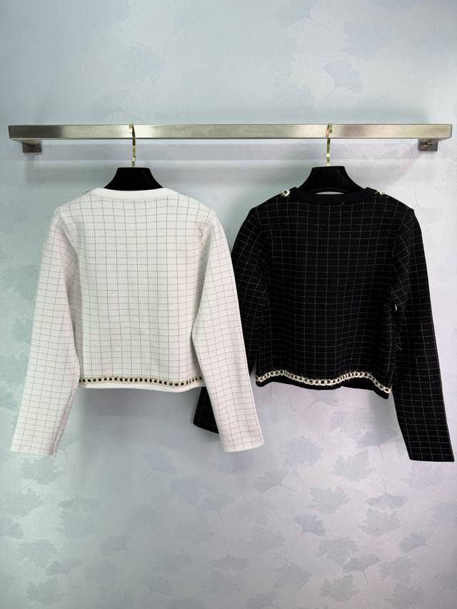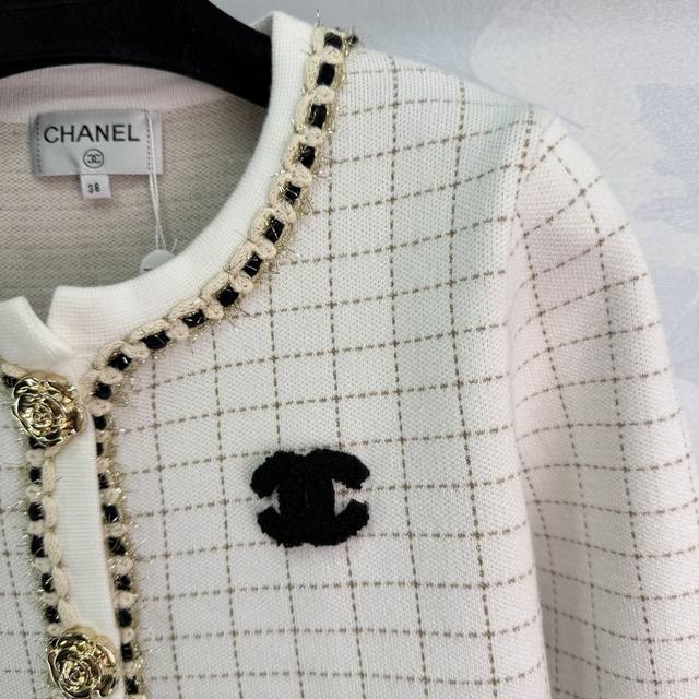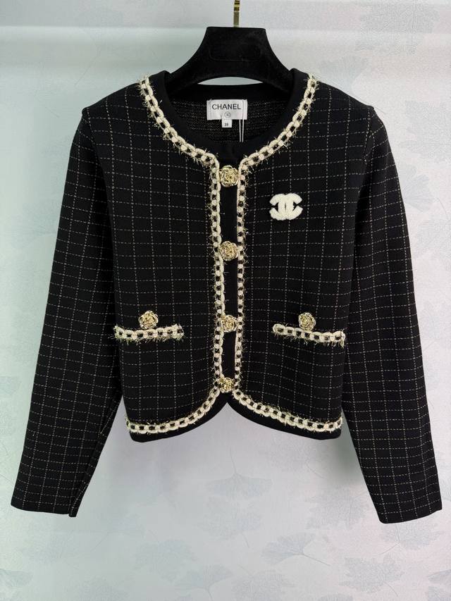 Ch*2025 Early Autumn New Arrival Silver Thread Plaid Crew Neck Knit Cardigan! Made with custom wool yarn, the texture is delicate and comfortable to wear. The crew neck knit cardigan design distinguishes the body from the trim with a plaid pattern and brightening contrasts with interwoven silver threads, creating a fashionable style. The highly elastic fabric is flattering and slimming. The chest is decorated with a plush double C logo, showcasing the brand's style. A versatile style that suits all ages and skin tones, perfect for a chic and relaxed look! Available in 2 colors and 3 sizes: S, M, L, T226B, DDD