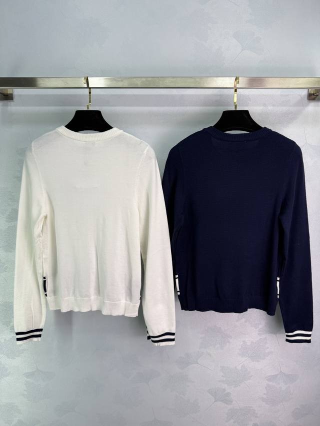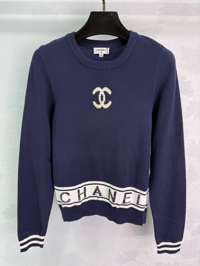 Ch*2025 Early Autumn New Jacquard Double C Logo Pullover Sweater! Made with custom wool yarn, this high-quality, comfortable, and soft round neck knit sweater features long sleeves and a tailored cut that exudes a gentle temperament. The double C logo on the chest and the horizontal letter logo decoration at the hem showcase the brand's style. The regular loose fit is flattering for all body types and ages, creating a sophisticated and relaxed look. A simple and versatile autumn/winter everyday style! Available in 2 colors and 3 sizes: S, M, L, D, D.