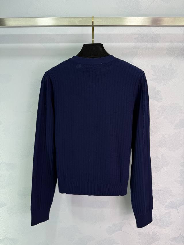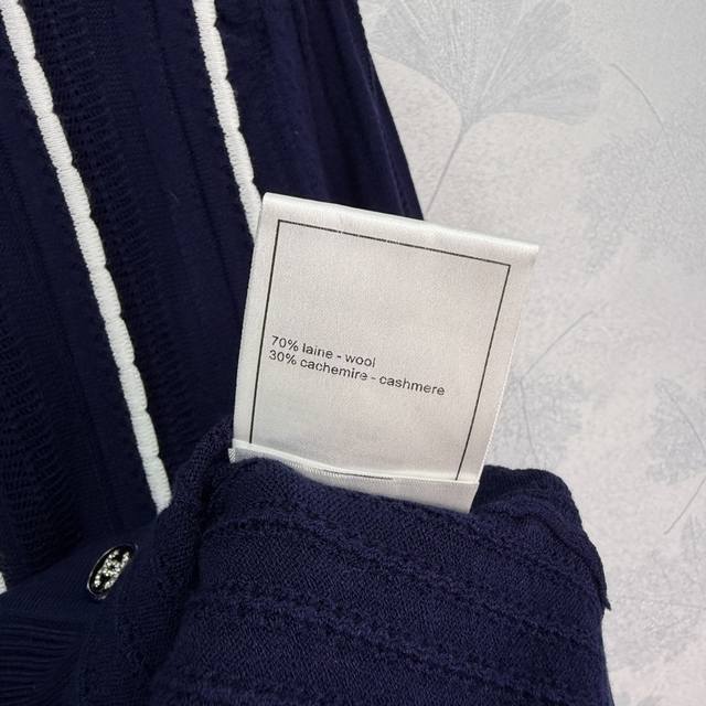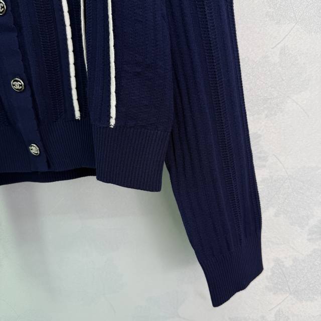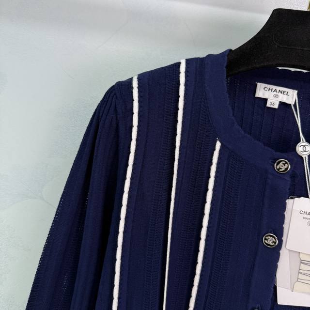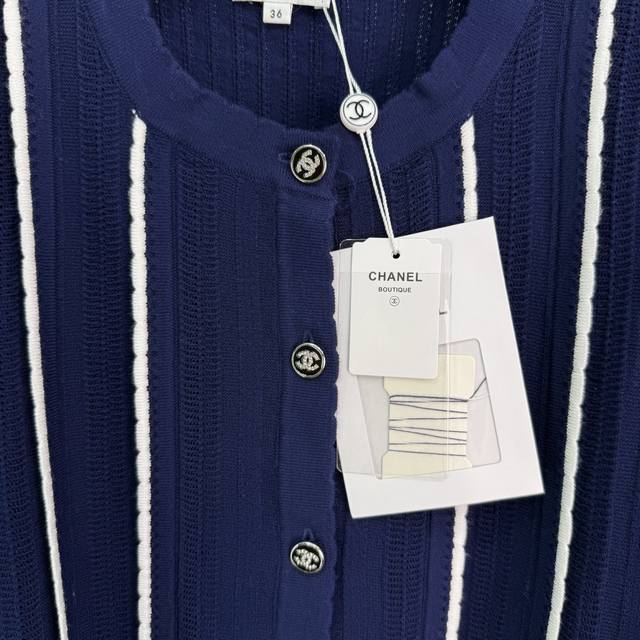 Ch*2025 Early Autumn new striped knitted cardigan classic double C button design white vertical stripes embellishment version is very beautiful, highlighting the light luxury and fashionable temperament, can be worn alone or layered, the first choice for fashionable wear in all seasons! 1 color 3 sizes Sml T226B.