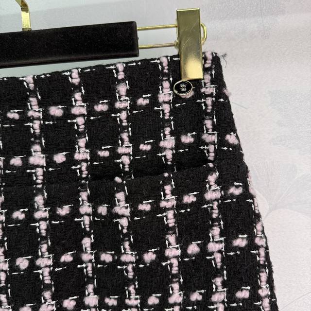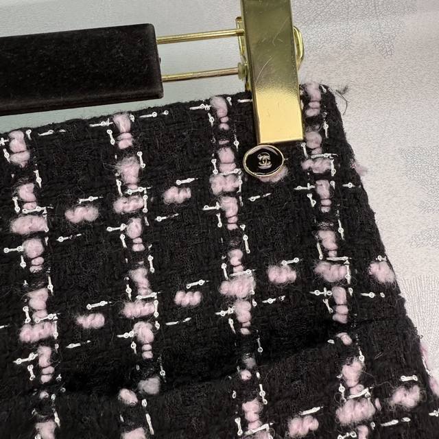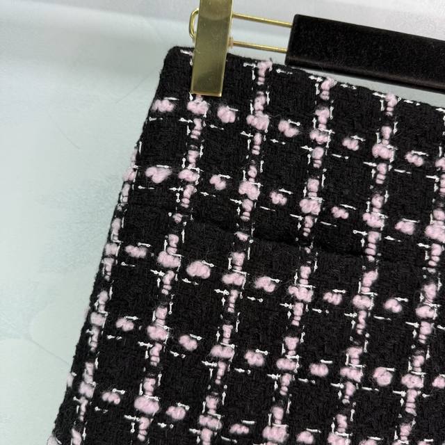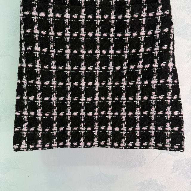 Ch*2025 Early Fall new fringed quilted woven dress and skirt set, custom-made. Made from imported YB wool, this woven fabric boasts a distinctly textured, visible wool and a premium, coarse, striped pattern, creating a signature socialite look. The jacket features a single row of printed buttons on the front, intricately detailed in pink and black. The woven texture is luxurious yet elegant, and the quilted fringe trims at the waist and pockets are elegant and layered. Paired with a matching straight skirt, this is a stylish and sophisticated choice! One color, three sizes. Sml T226B.