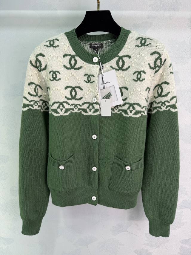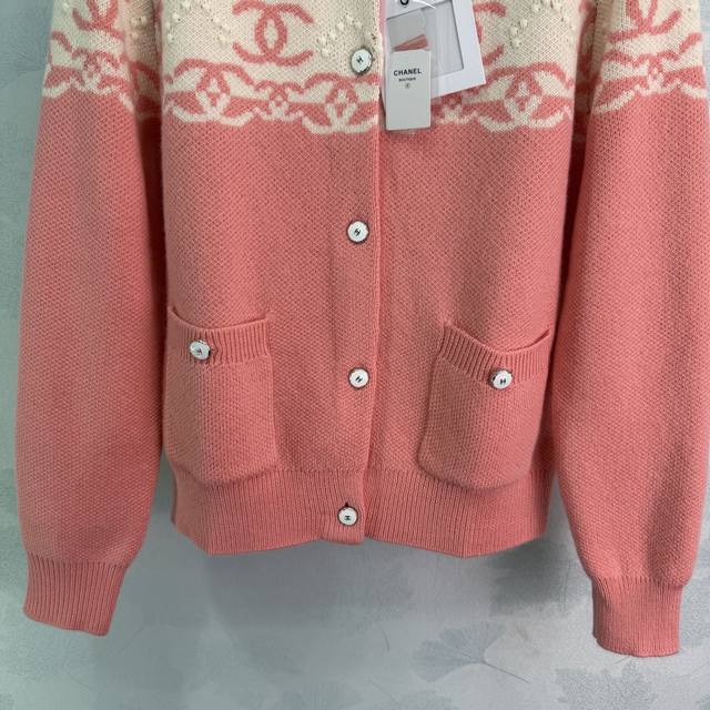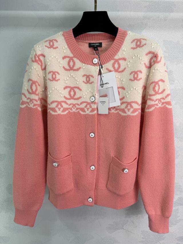 Ch*2026 Early Spring New Color Block Double C Jacquard Knit Cardigan, Custom Imported Cashmere, Soft and Delicate, Comfortable to Wear. Round Neck Knit Cardigan with a contrasting color design throughout. The brand's double C logo breaks the monotony and showcases the brand's style. Suitable for everyday wear and commuting. 2 colors, 3 sizes: S, M, L, T, 22, 6, B. DDD