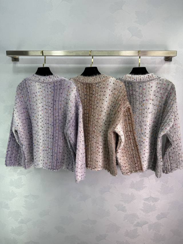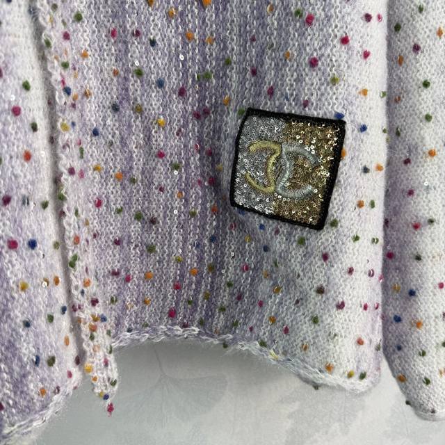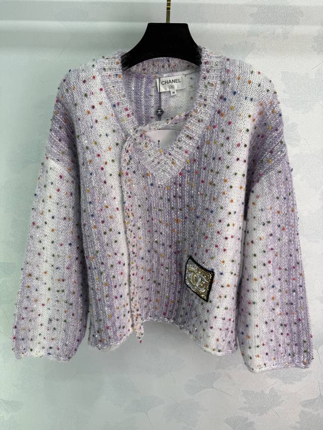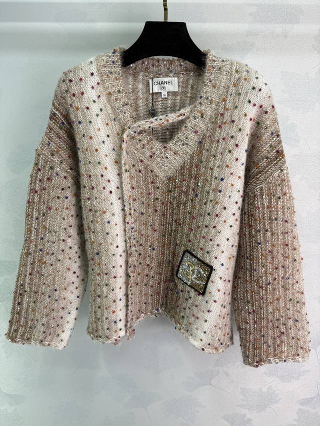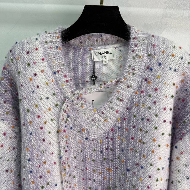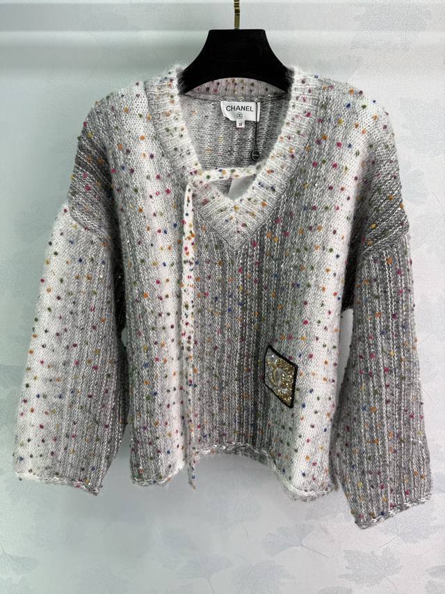 Ch*25 Autumn/Winter New Colorful Polka Dot Knit Top, V-neck design, colorful dots adorning the chest with a gold logo badge, soft and comfortable fabric, a simple and versatile style for autumn and winter! 3 colors, 3 sizes: S, M, L, DDD