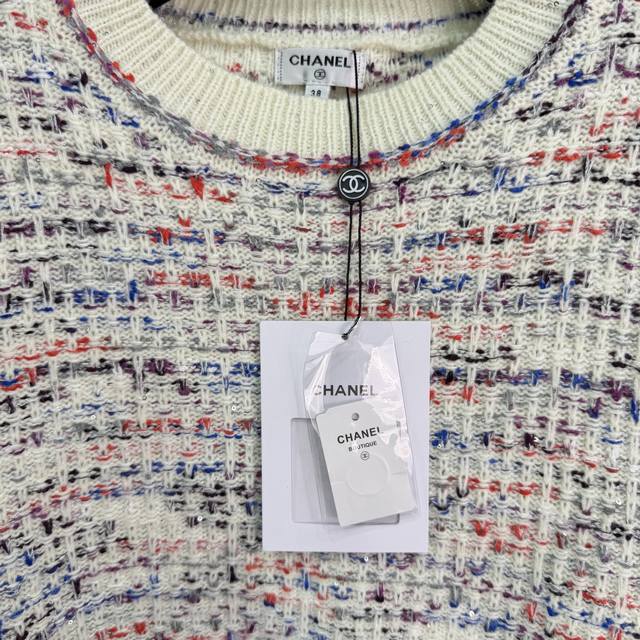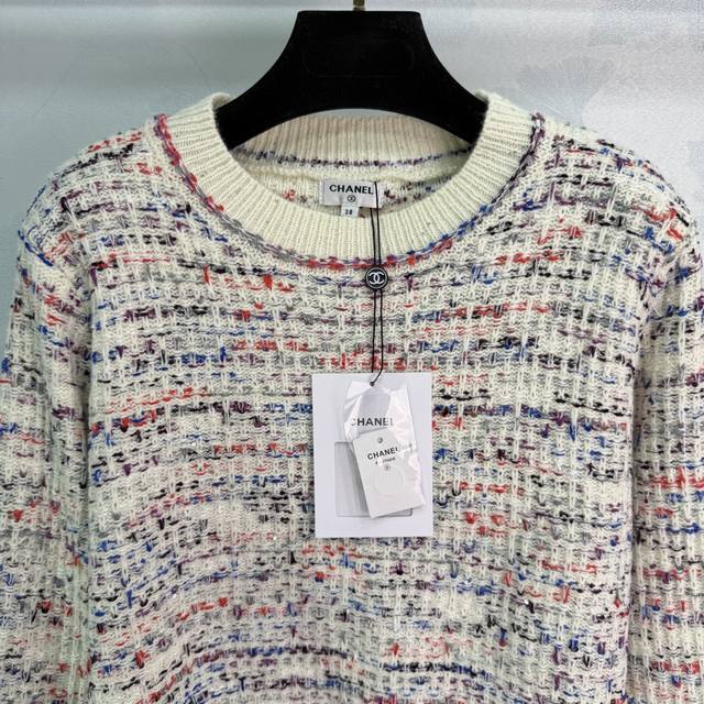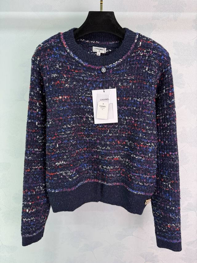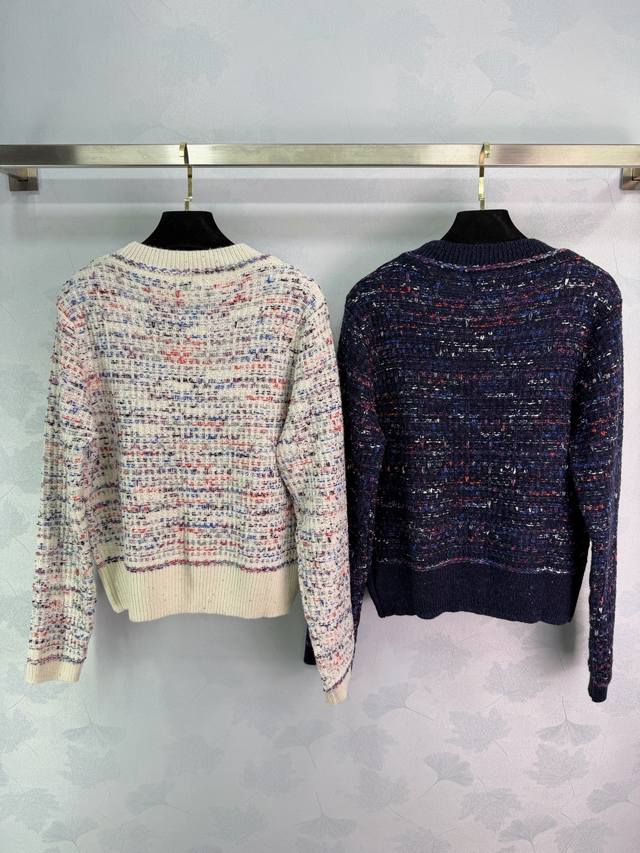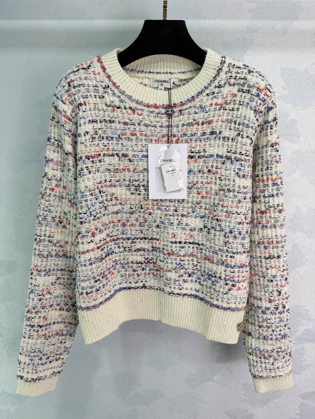 Ch*25 Autumn/Winter New Crew Neck Knit Sweater, made of soft and warm wool, classic tweed texture + mixed yarn color scheme, full of French retro feel.