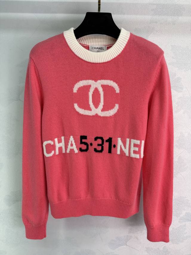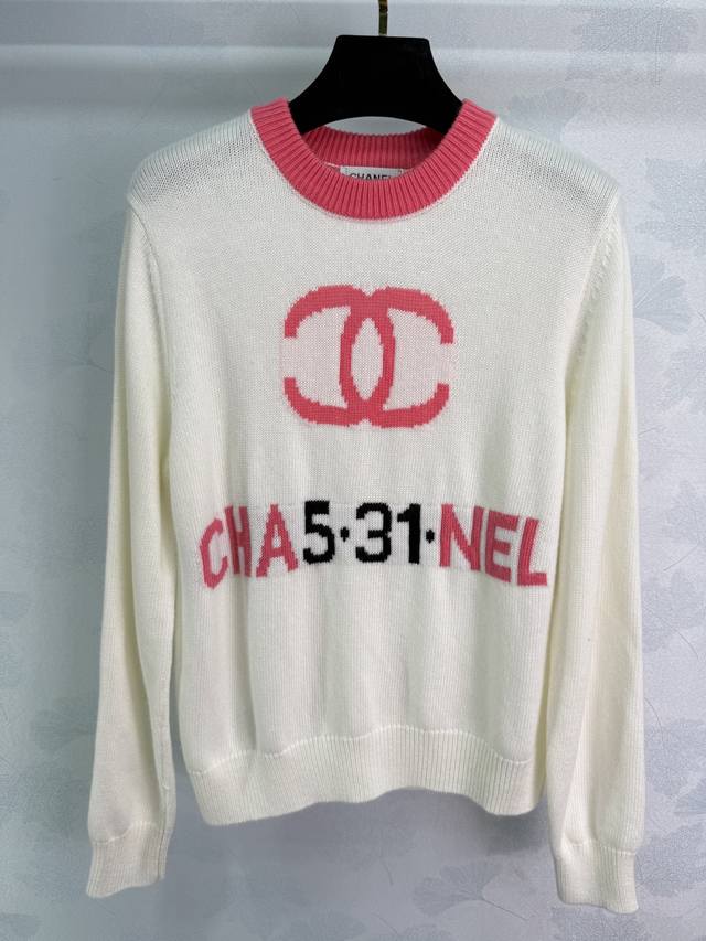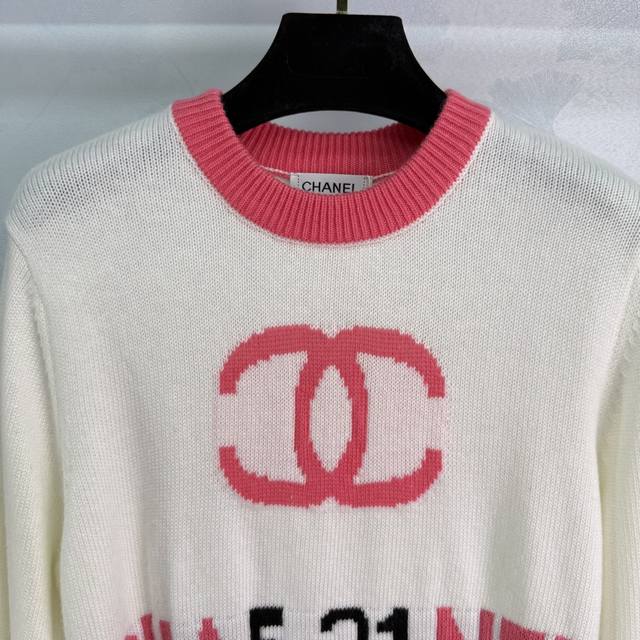 Ch*25 Autumn/Winter New Double C Letter Knit Sweater, Classic Round Neck Design,
