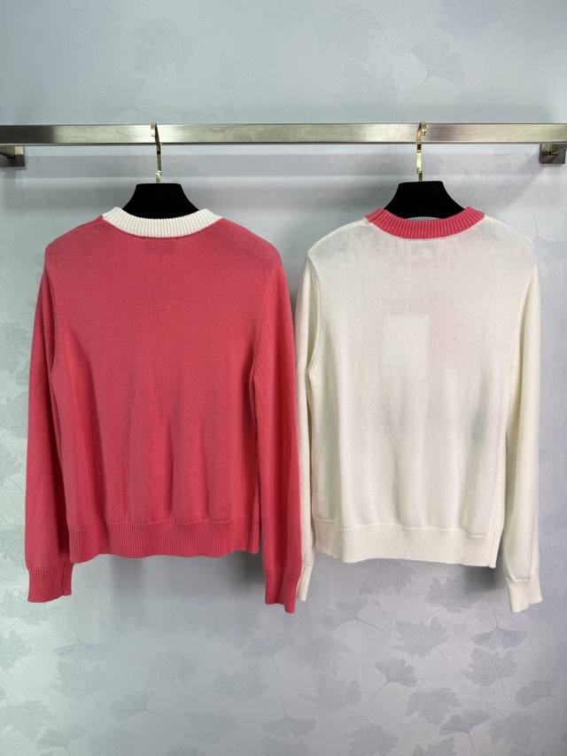 Ch*25 Autumn/Winter New Double C Letter Knit Sweater, Classic Round Neck Design, Large Logo Embroidery on Chest, Color-Blocked Cuffs, Comfortable and Warm Fabric, Simple and Versatile for Autumn/Winter Everyday Wear! 2 Colors, 3 Sizes: S, M, L, T226B,
