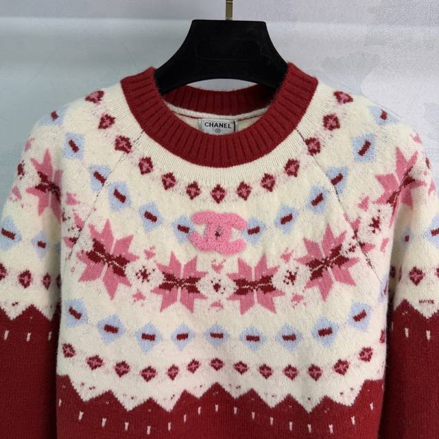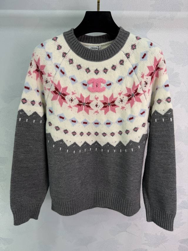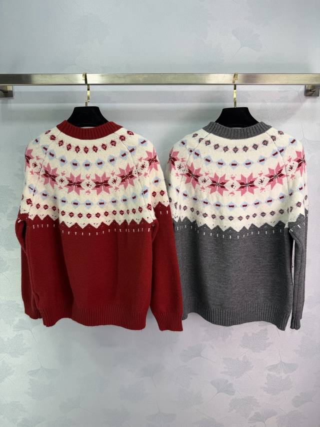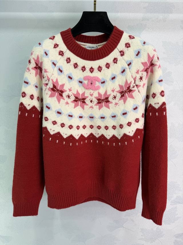 Ch*25 Autumn/Winter New Fair Isle Style Jacquard Sweater. Classic Nordic design, snowflake and geometric patterns create a wonderful atmosphere. Custom-made yarn is soft, skin-friendly, and warm. The color-blocking design is both retro and fashionable, exuding a festive vibe. Perfect for everyday wear or parties! 2 colors, 3 sizes: S, M, L, T226B. DDD