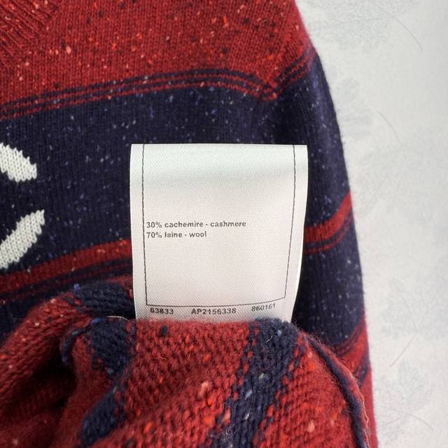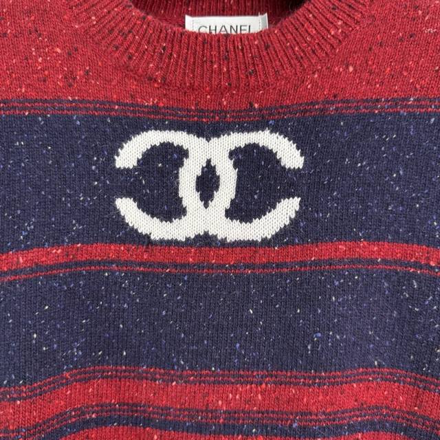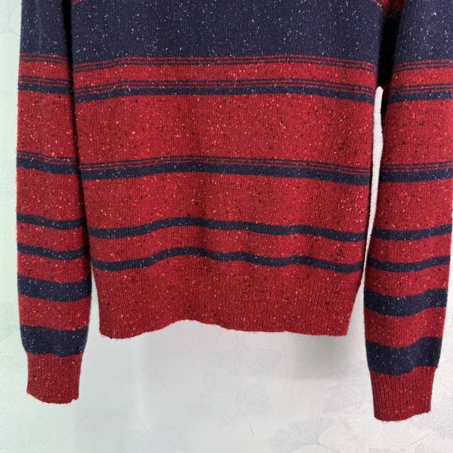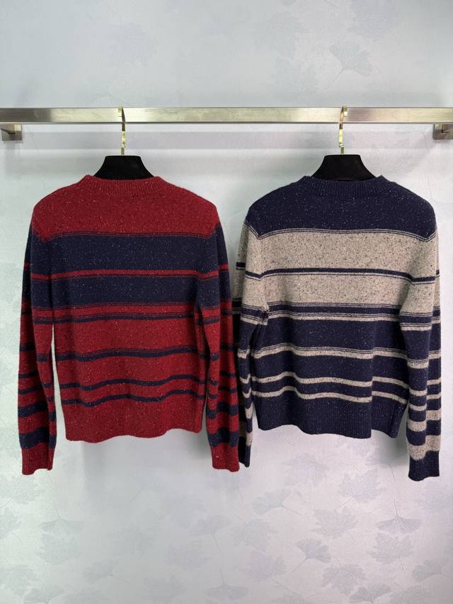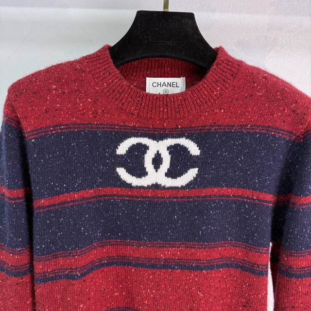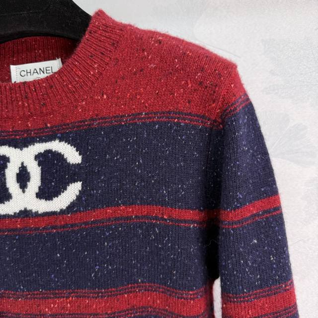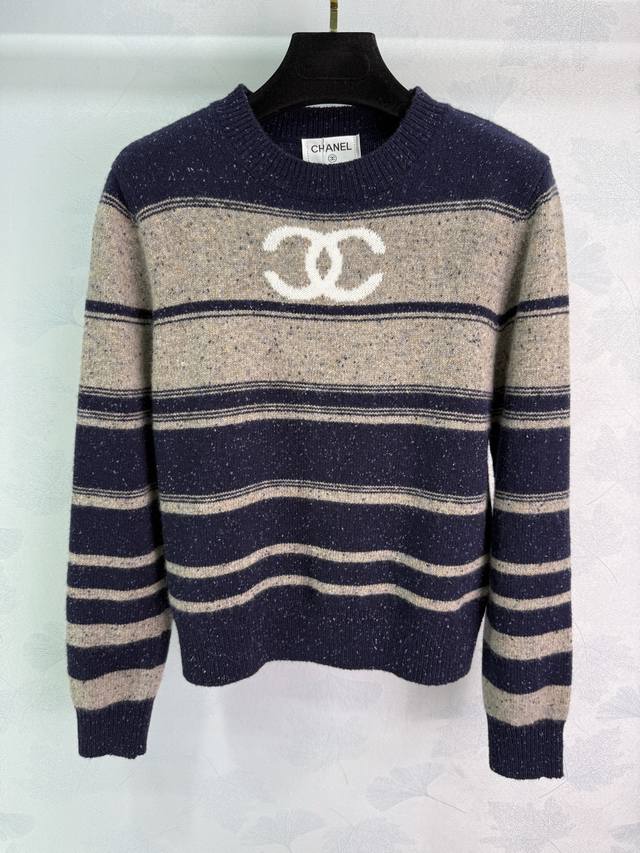 Ch*25 Autumn/Winter New Knitted Round Neck Pullover with Color Block Stripe Trim and Letter Logo on Chest - Simple, Stylish, Exquisite, and Versatile - Sizes S, M, L. DDD