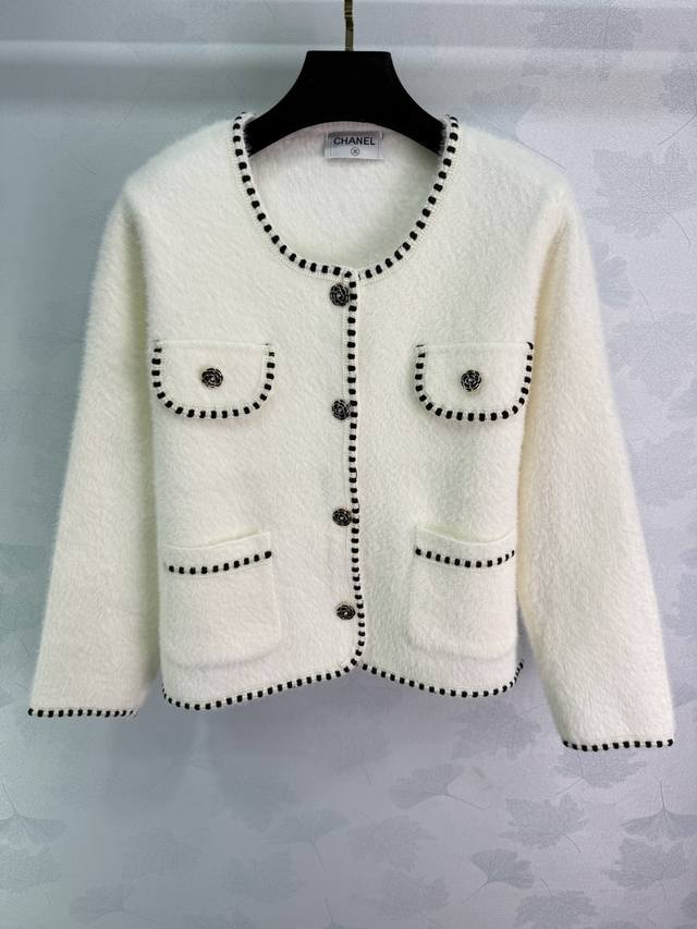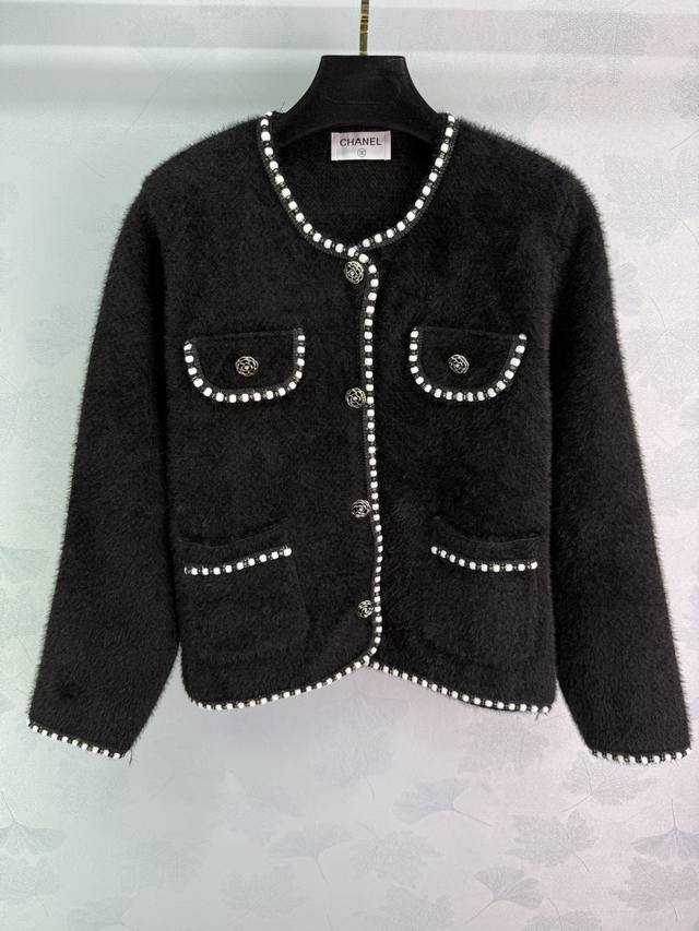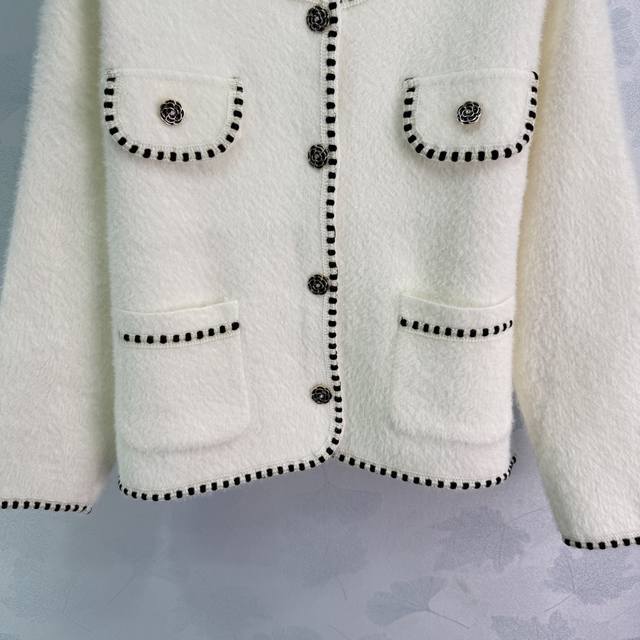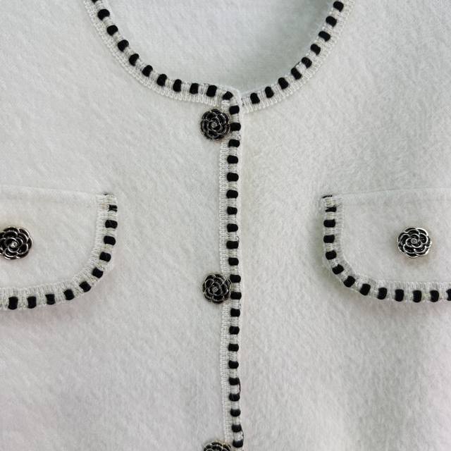 Ch*25 Autumn/Winter New Round Neck Jacket, Classic Chanel Style, Camellia Button Embellishment, Exquisite Fabric, Soft and Comfortable, Versatile Style, Suitable for All Ages and Skin Tones, Pairs with Skirts and Pants, Youthful, Stylish, and Retro! 2 Colors, 3 Sizes S, M, L, T226B. DDD