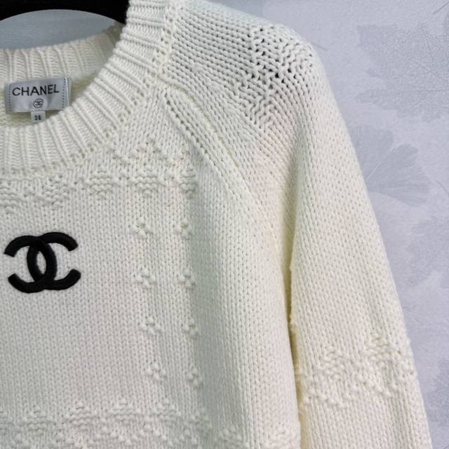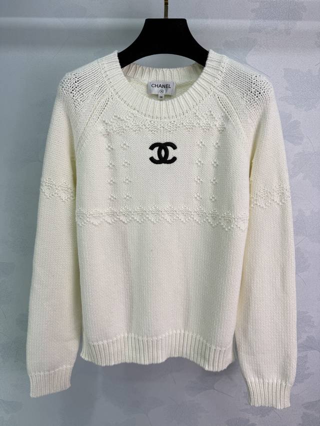 Ch*25 Autumn/Winter New Round Neck Knit Sweater. Embroidered double C logo on the chest, hollowed-out floral pattern. Soft and comfortable fabric. Loose and relaxed fit. Looks great with a coat! 2 colors, 3 sizes: S, M, L, DDD