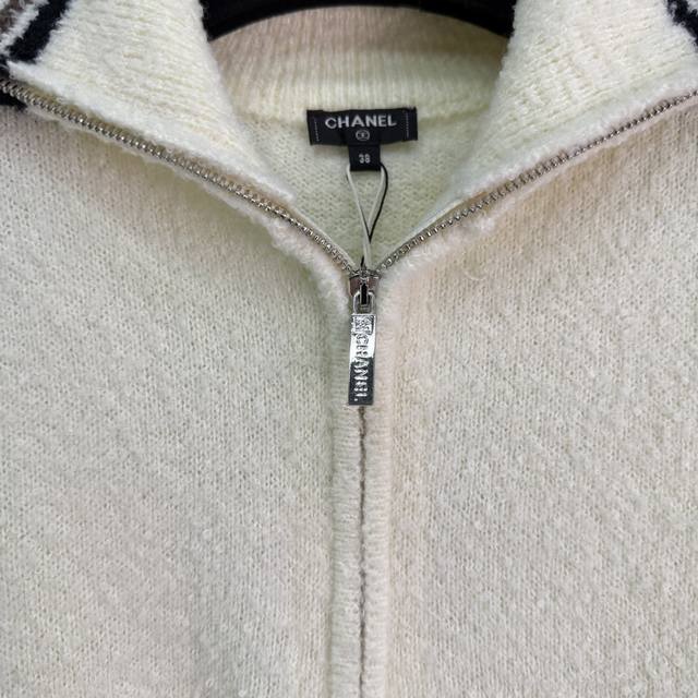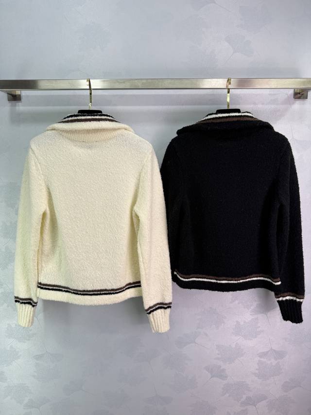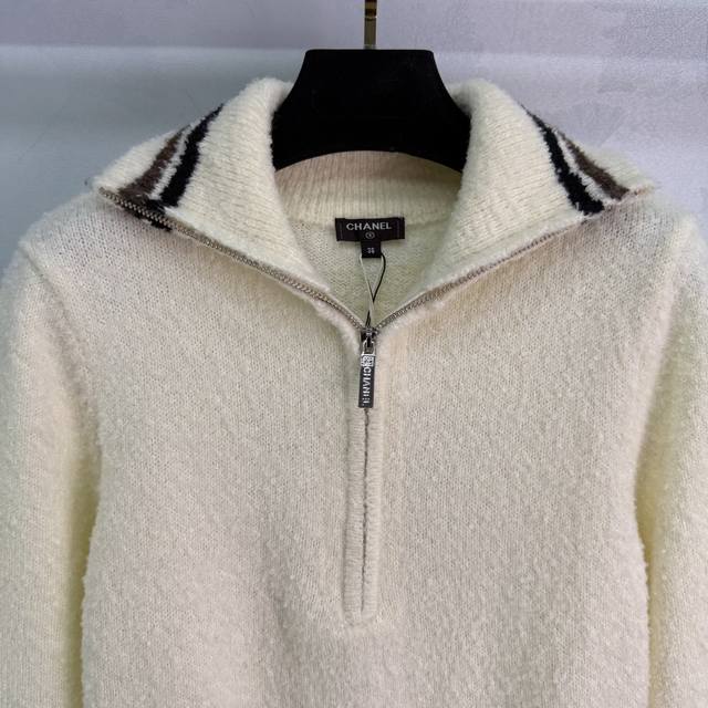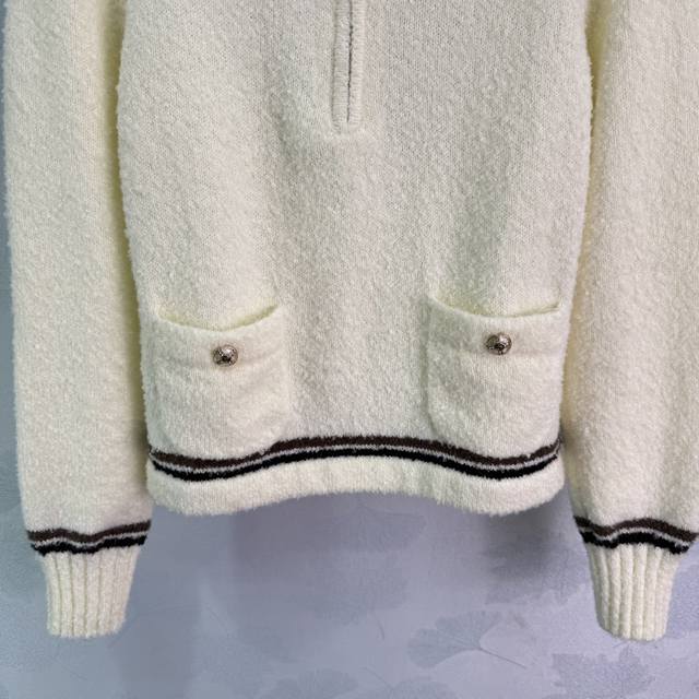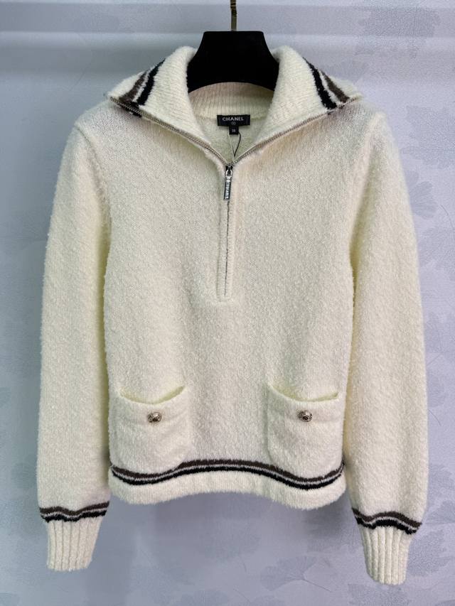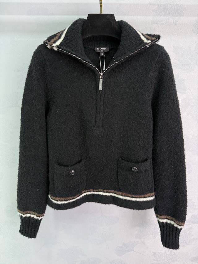Ch*25 Autumn/Winter New Ski Series Collared Top with Classic Striped Trim Design, Half-Zip Closure, Soft and Comfortable Pure Wool Fabric, Simple and Stylish, Double Pocket Design, Practical and Versatile! 2 Colors, 3 Sizes: S, M, L, T226B,