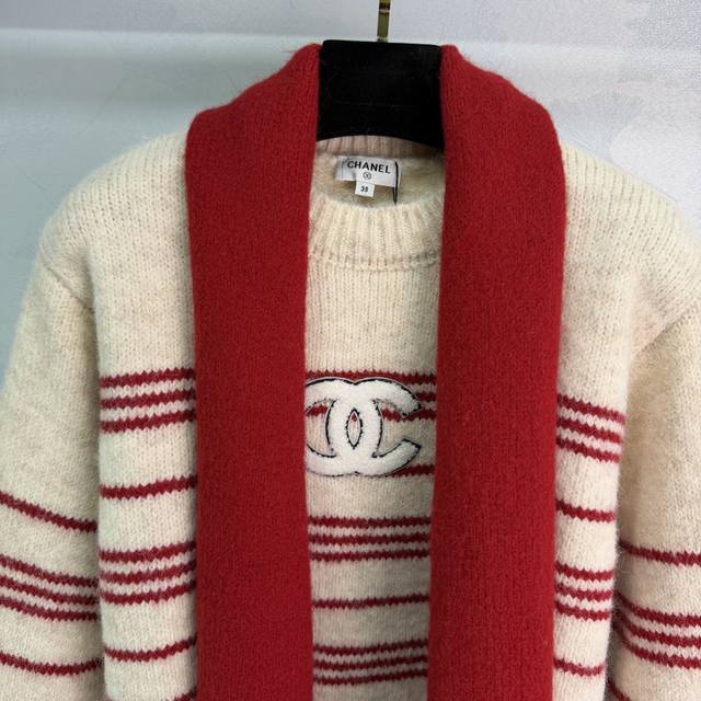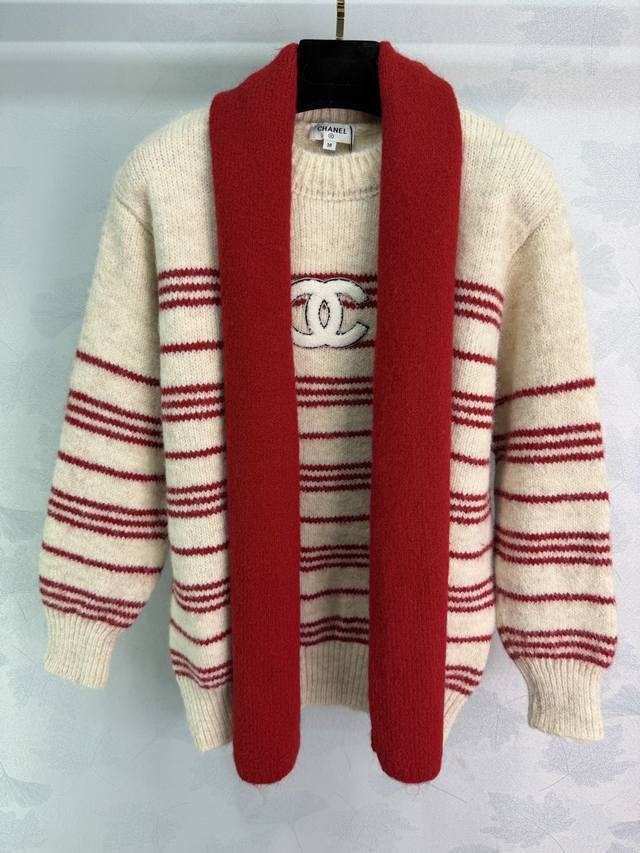 Ch*25 Autumn/Winter New Striped Knit Set, Loose Sweater + Matching Scarf, Made o