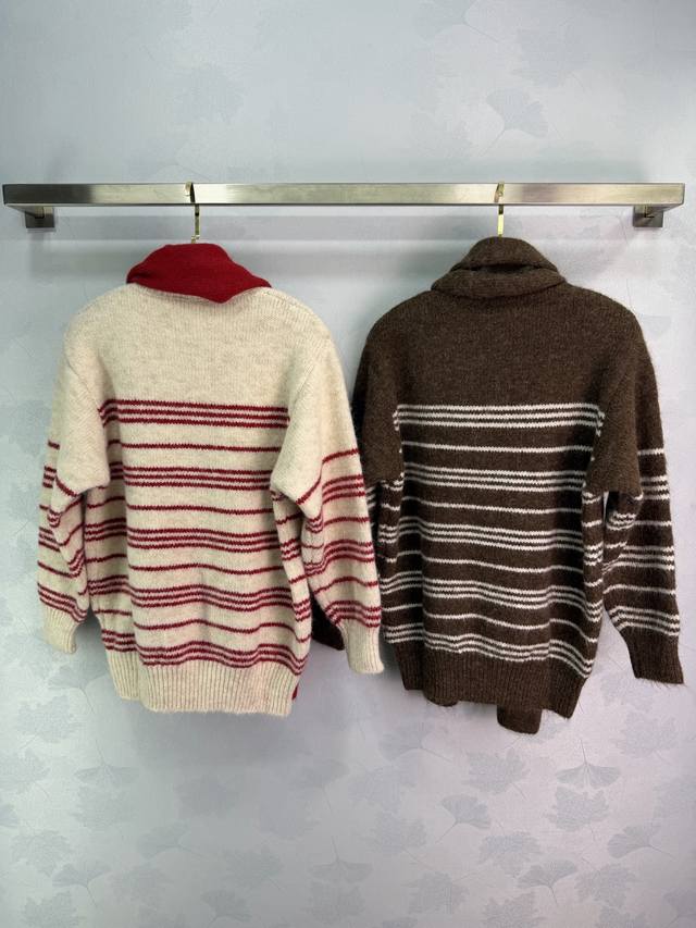 Ch*25 Autumn/Winter New Striped Knit Set, Loose Sweater + Matching Scarf, Made of Mohair Blend, Soft and Fluffy, Super Comfortable to Wear, 2 Colors, 3 Sizes Sml T226B. DDD