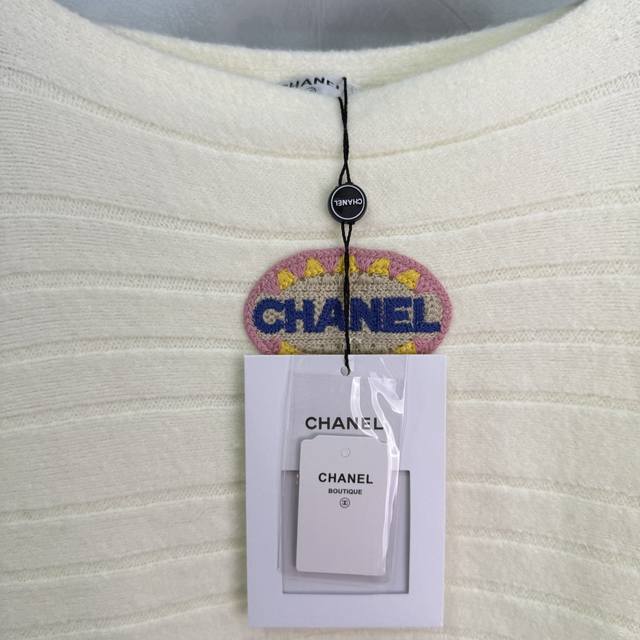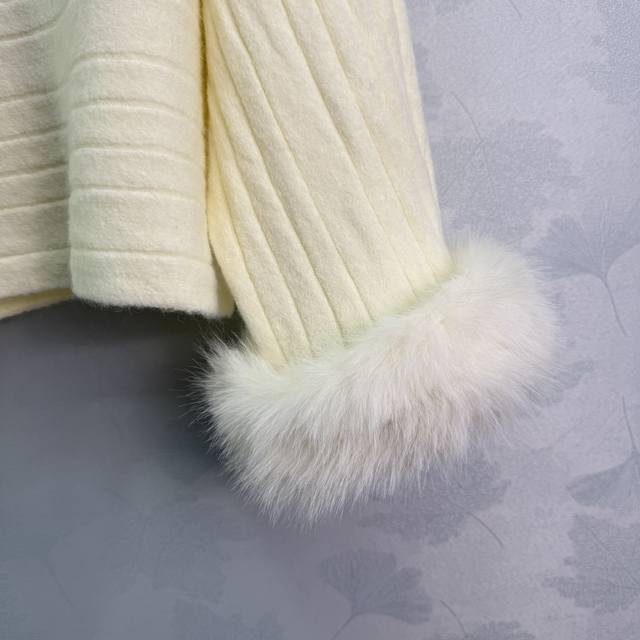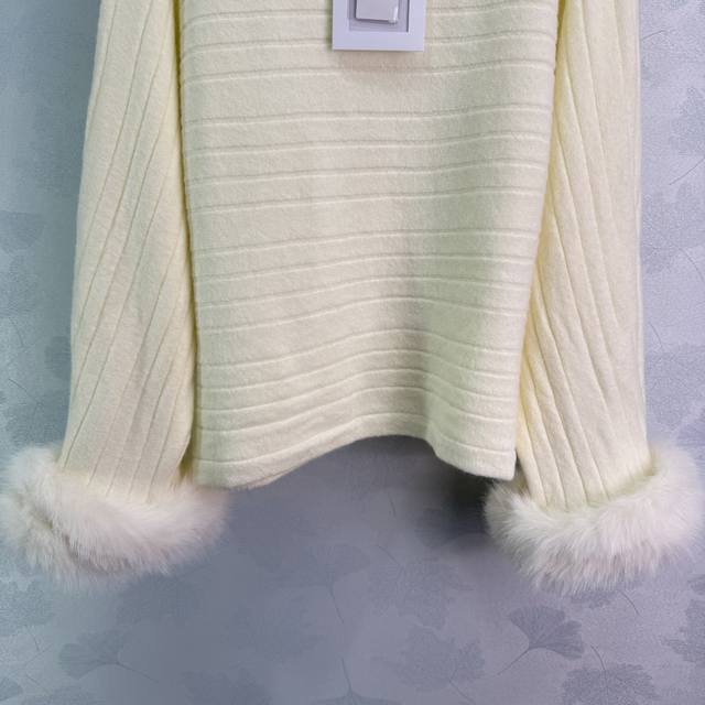 Ch*25 Autumn/Winter New Style Off-Shoulder Sweater with Fox Fur Cuffs for Super Warmth; Vertical Stripes; Loose Fit; Logo Embellishing on Chest Highlights Brand Style; Makes the Outfit More Sophisticated and Relaxed; Simple and Versatile Autumn/Winter Everyday Wear! 2 Colors, 3 Sizes: S, M, L; T226B,