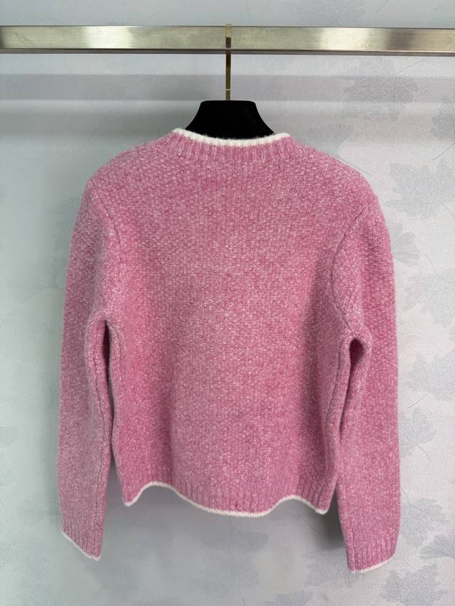 Ch*25 Autumn/Winter New Tweed Cardigan, classic knitting technique, soft and warm texture. Gold buttons and double C logo embroidery, exquisite details, simple and elegant round neck design, white piping on cuffs and hem, full of layering. Effortlessly create a French atmosphere~ 1 color, 3 sizes Sml T226B DDD