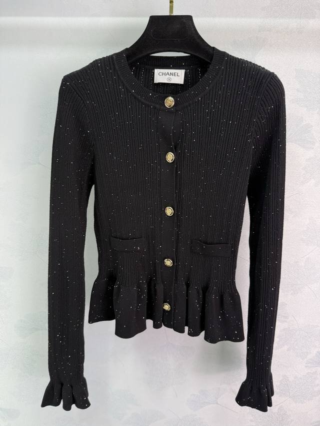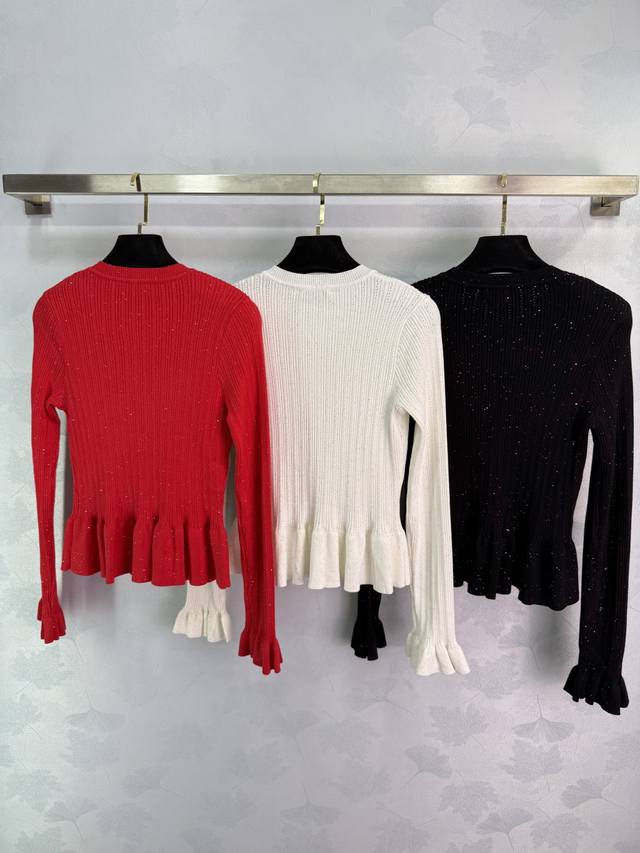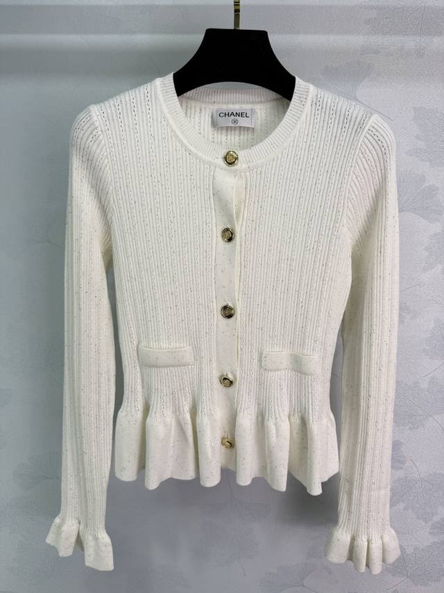 Ch*25 Early Autumn New Round Neck Knit Cardigan with Gold Buttons and Ruffled Bell Sleeves - A High-End Design, Soft and Comfortable Fabric, Exquisite Workmanship, and a Lively and Cute Everyday Fashion Must-Have! 3 Colors, 3 Sizes: Sml